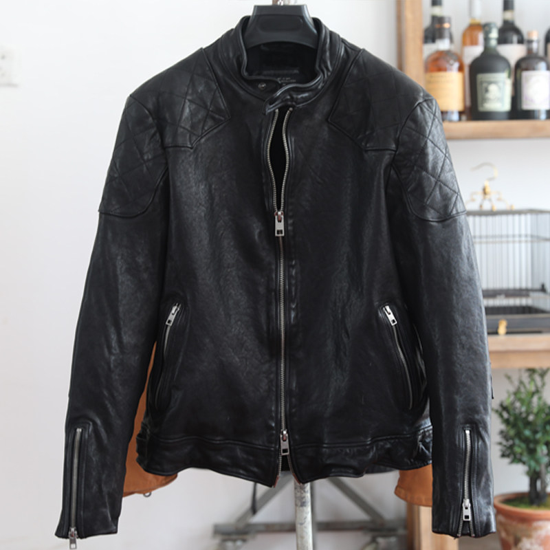 【反季捡漏儿~】小贝头层牛皮绵羊皮立领美式休闲男真皮皮衣