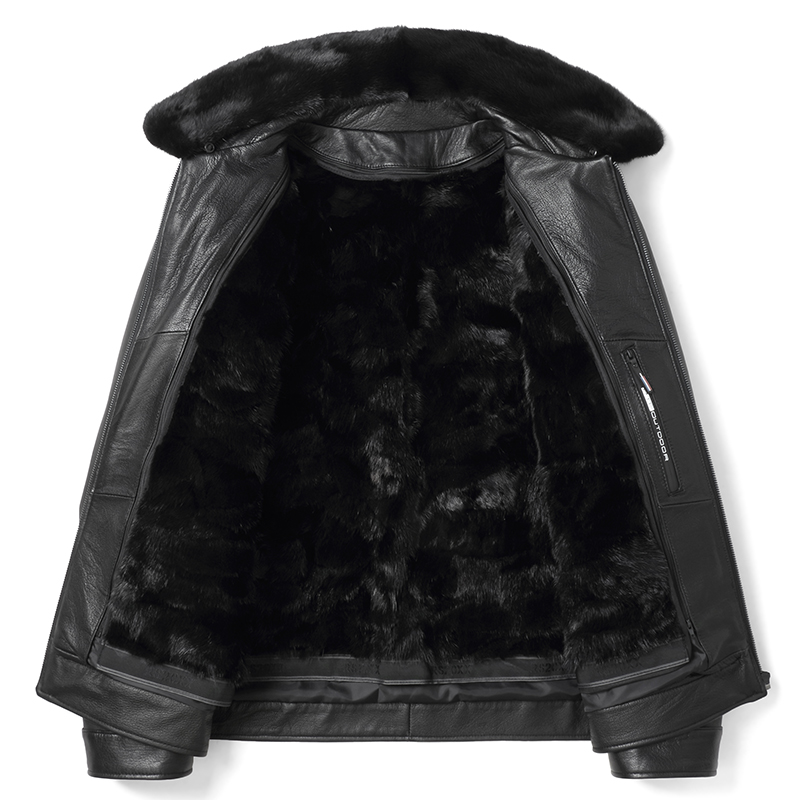天猫海宁皮草真皮皮衣男士山羊皮皮毛一体貂皮大衣皮夹克水貂内胆外套
