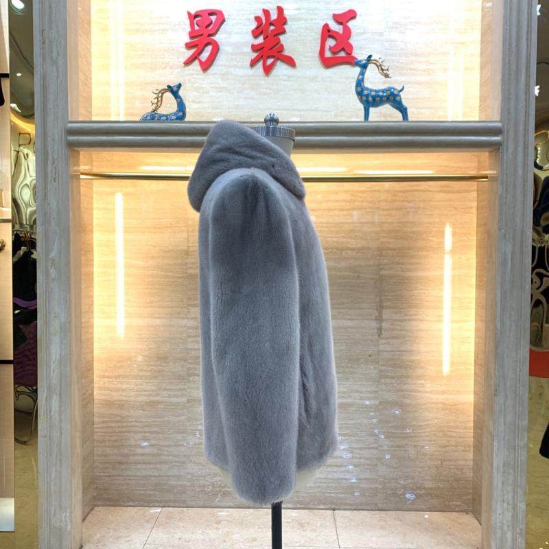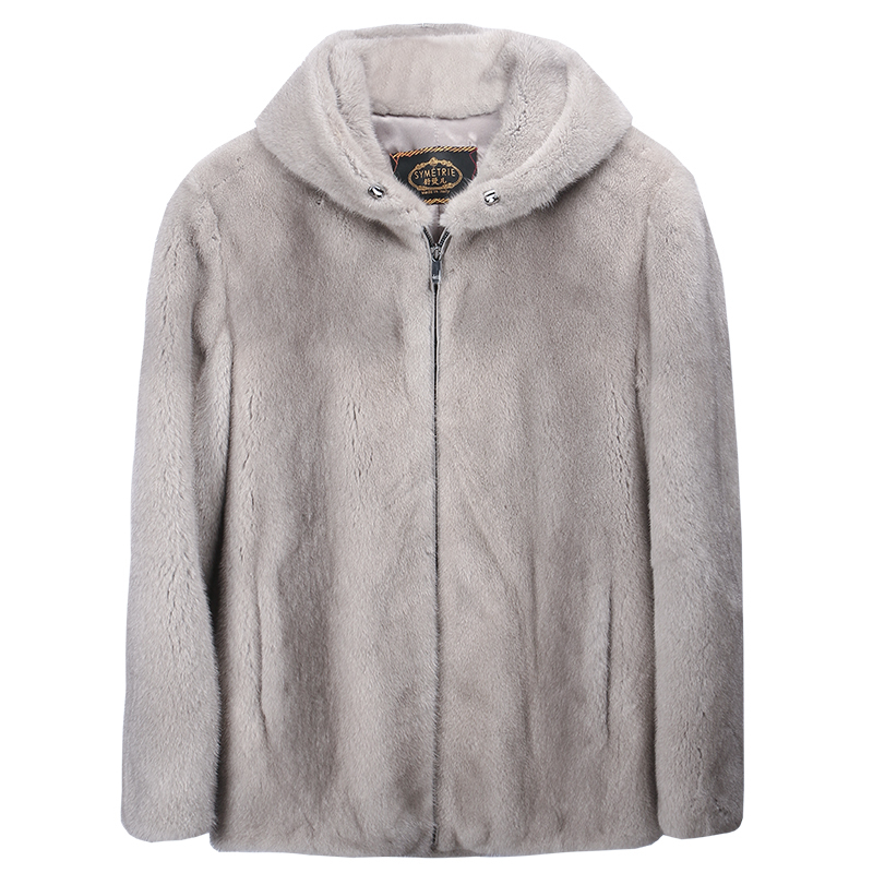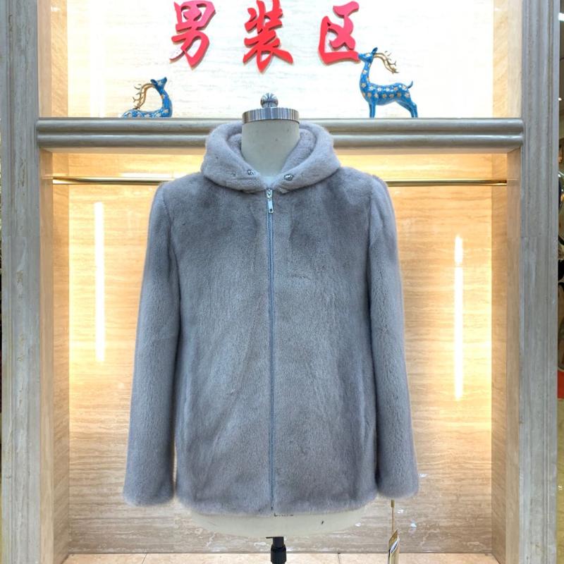 淘宝新款进口银蓝本色水貂男士皮草貂皮大衣外套整貂带帽马甲皮衣修身
