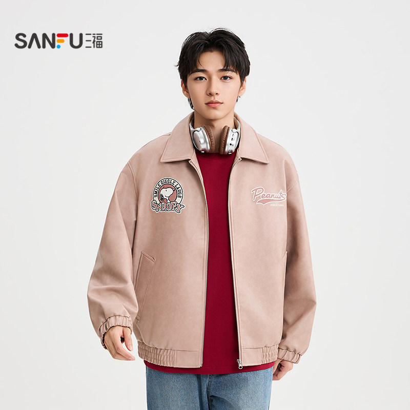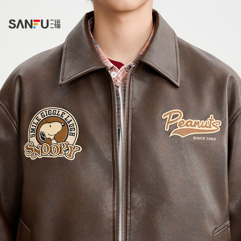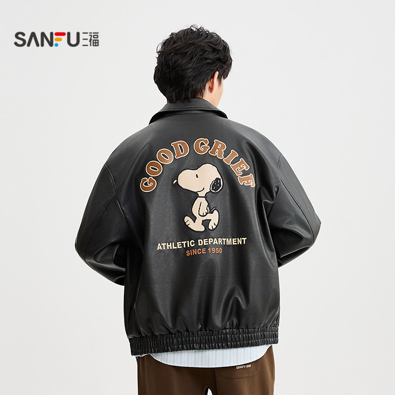 天猫【史努比联名】三福2025秋冬男士刺绣PU皮衣夹克外套507952