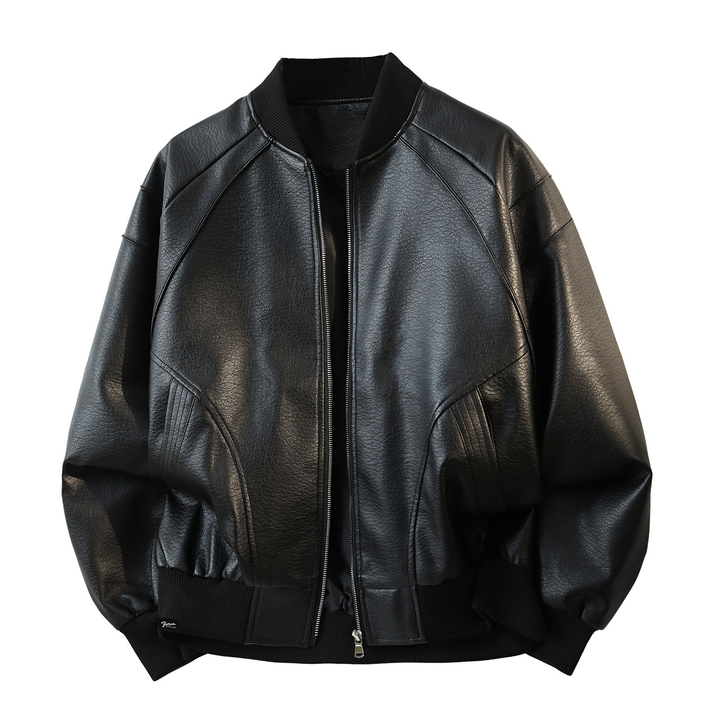 2025新款春秋季帅气夹克情侣款纯色皮衣初中高中外套男士宽松上衣