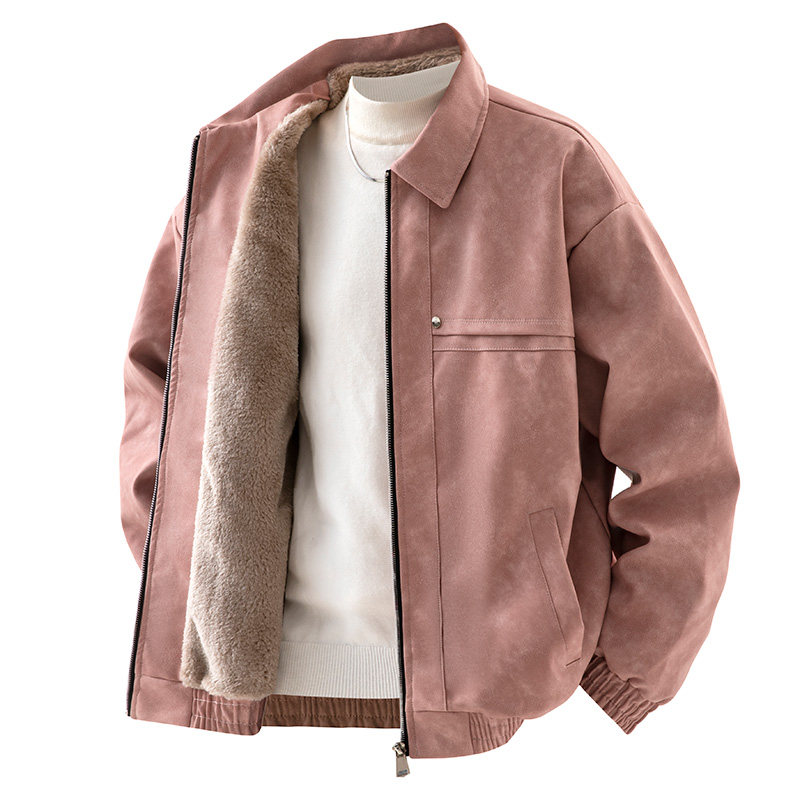 淘宝OCW潮牌 美式加绒夹克PU皮衣男2025秋冬新款学生加厚保暖翻领外套