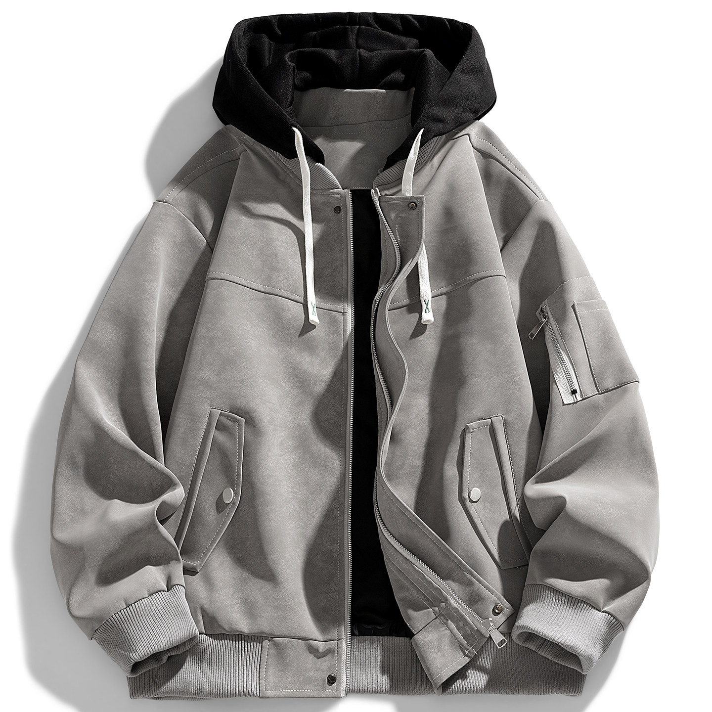 淘OCW潮牌 美式加绒夹克PU皮衣男2025秋冬新款学生加厚保暖翻领外套