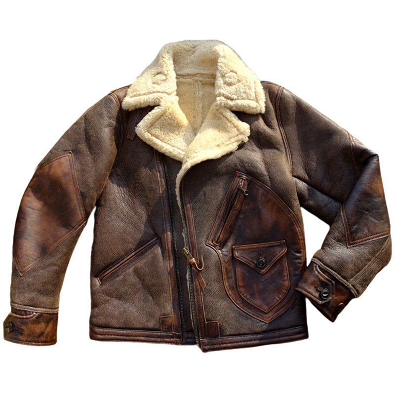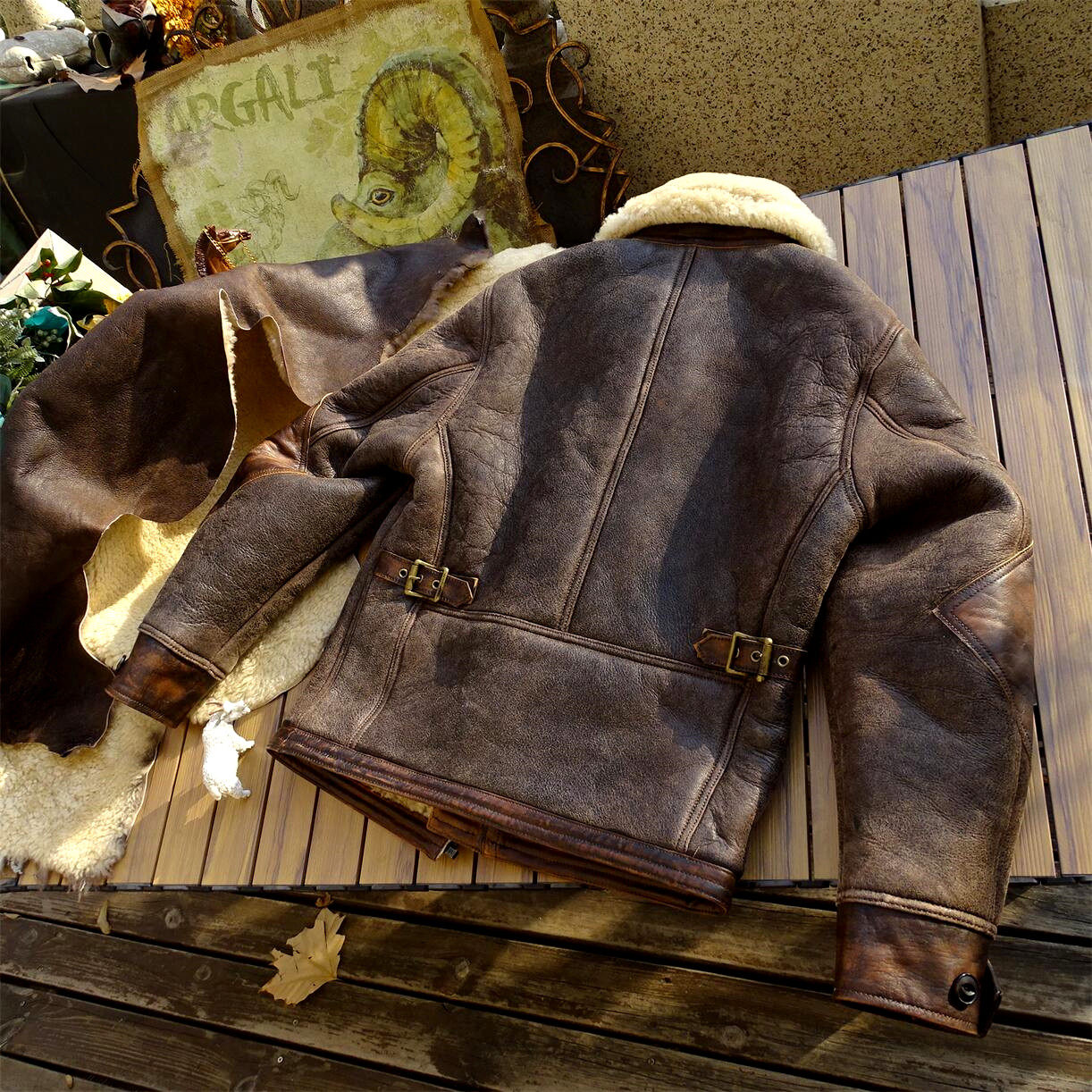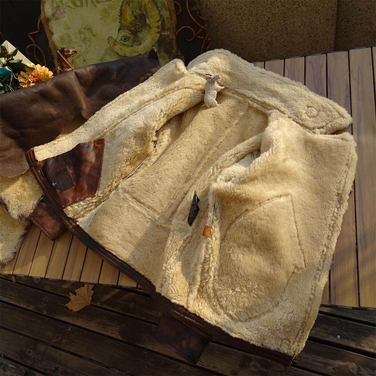淘宝D3斜拉RL经典美式复古龟裂原生态羊皮毛一体真皮皮衣男