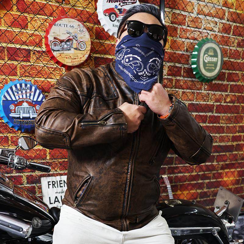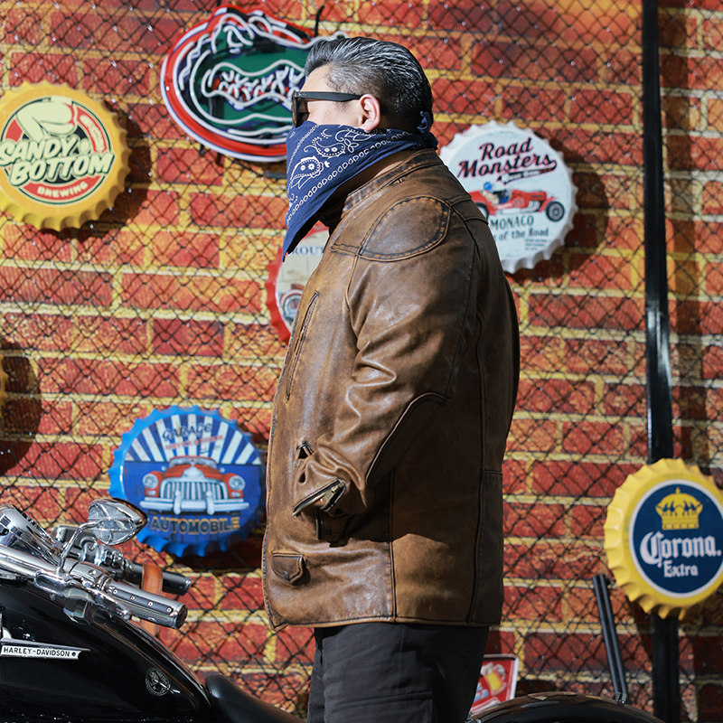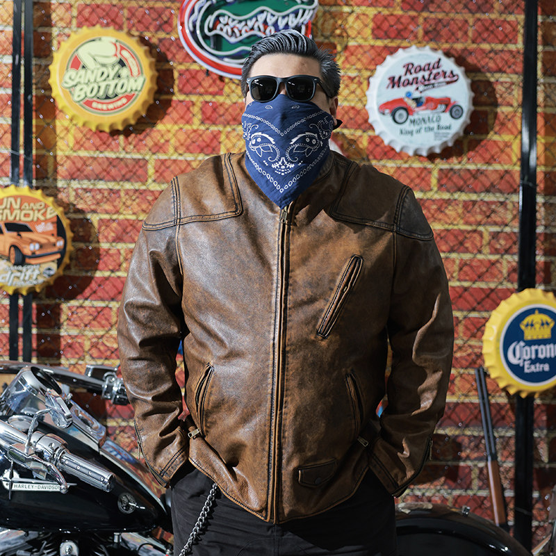 淘宝核爆炸咖啡色立领植鞣头层牛皮衣拉链复古机车男士真皮大码皮夹克