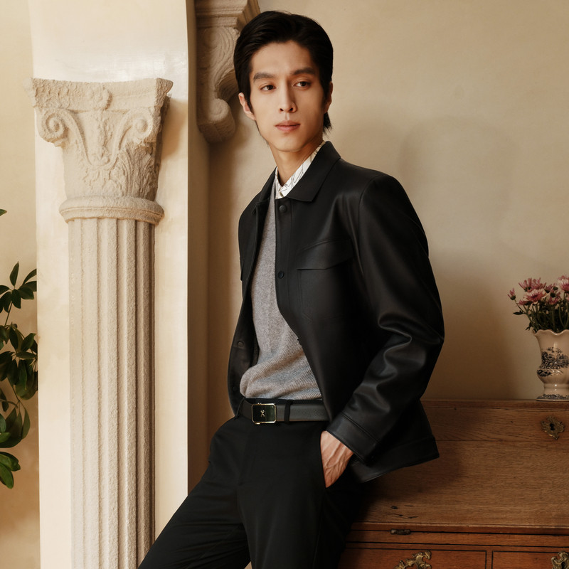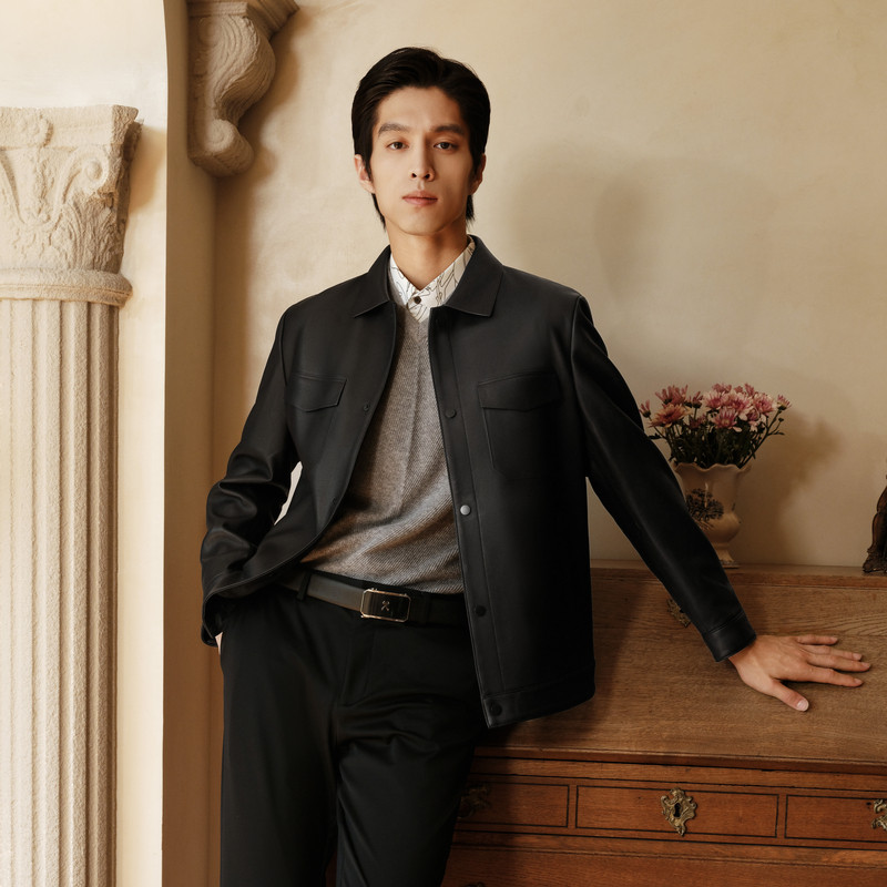 天猫劲霸男装男士皮夹克商务同款翻领高级感羊皮真皮皮衣外套皮装