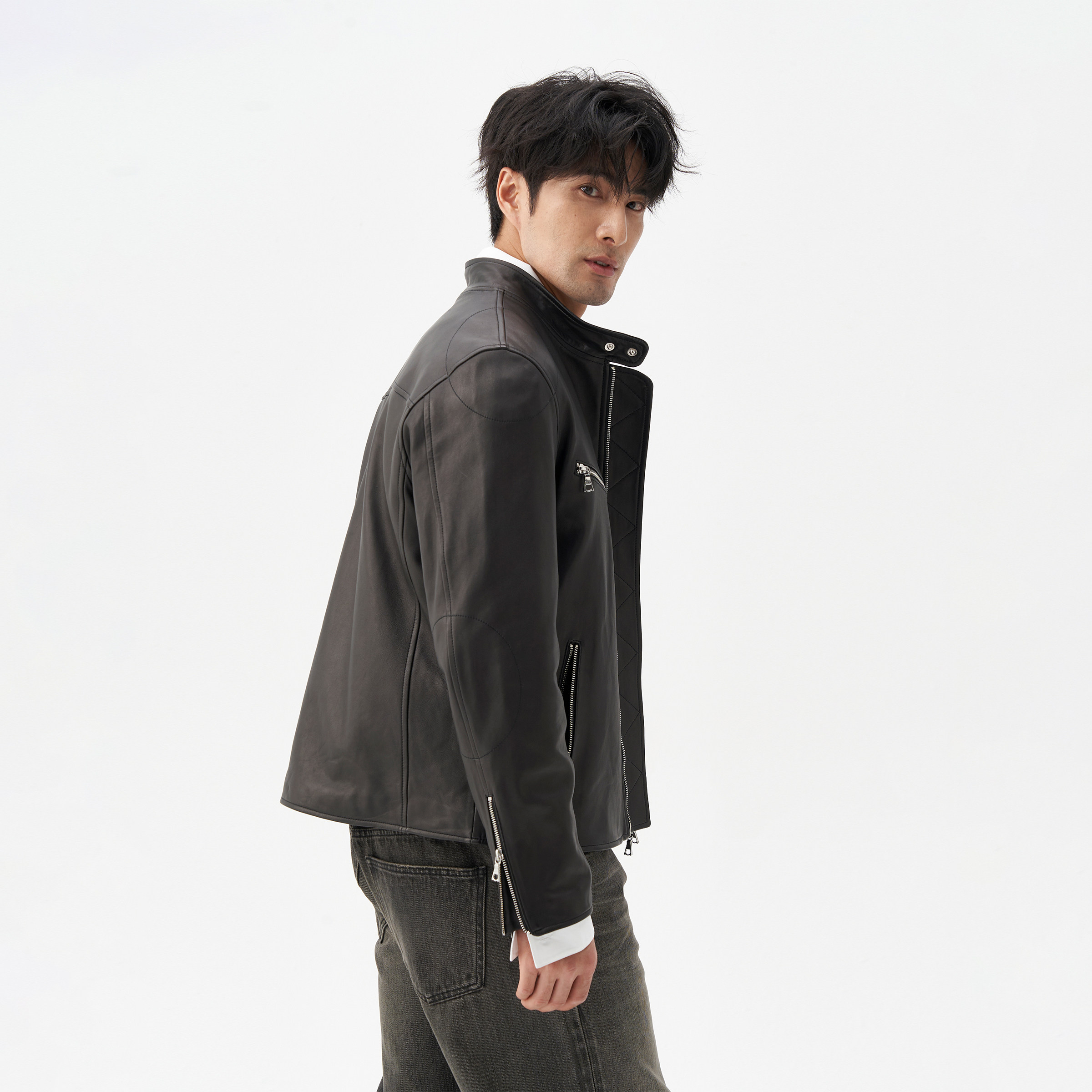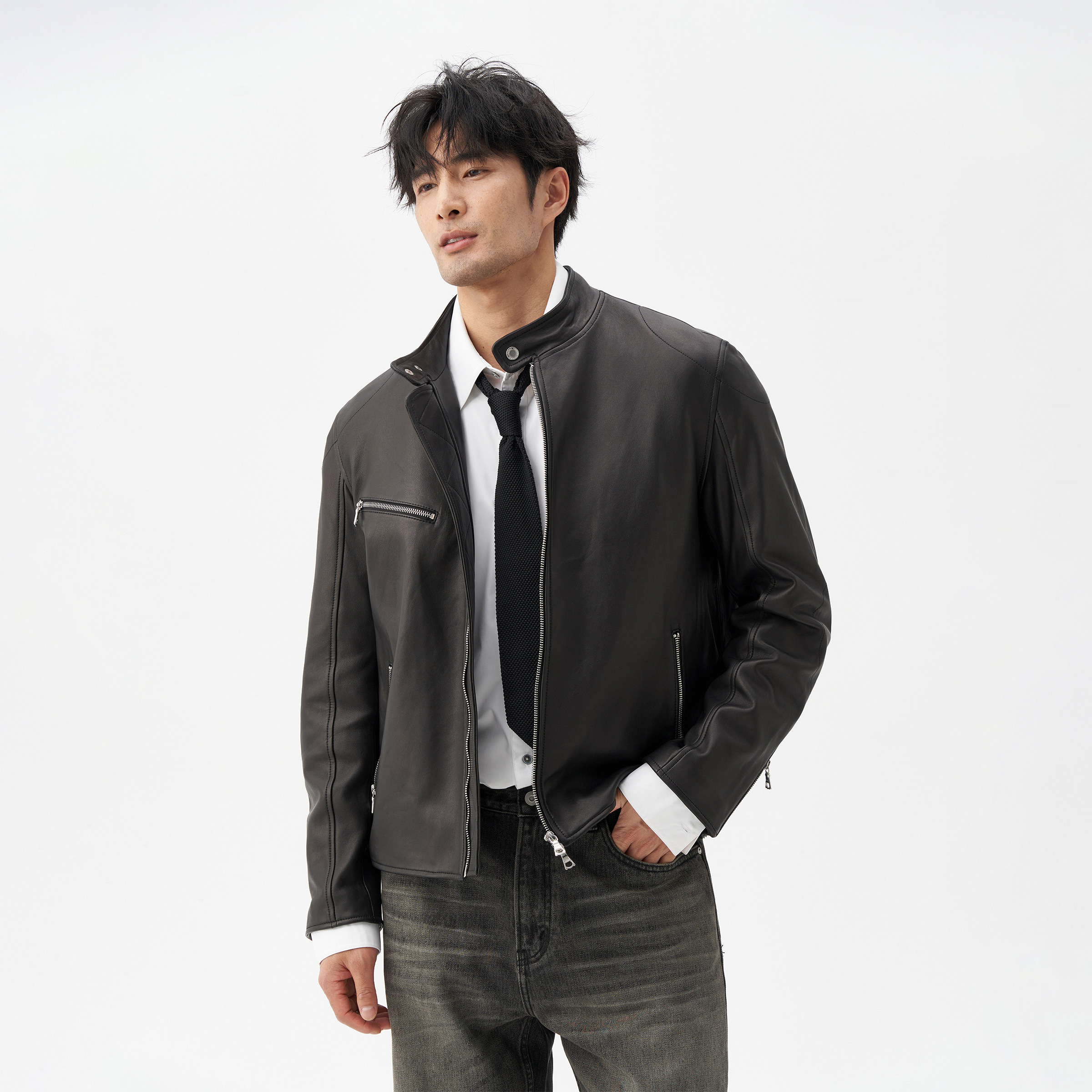 LEZORA痞帅加厚半植鞣绵羊皮拉链夹克,专为型格男士打造。精选优质半植鞣绵羊皮,皮质柔软细腻,加厚设计兼顾保暖与挺括感,轻松驾驭秋冬街头。经典机车版型搭配利落金属拉链,细节处彰显不羁态度,立领剪裁凸显颈部线条,帅气中透出几分痞酷气质。多口袋实用设计,兼顾美观与功能性。无论是搭配牛仔裤还是工装裤,都能轻松穿出硬朗型男风范。LEZORA以匠心工艺融合潮流元素,让这件皮衣不仅是一件外套,更是态度的表达,是追求个性与质感男士的不二之选。