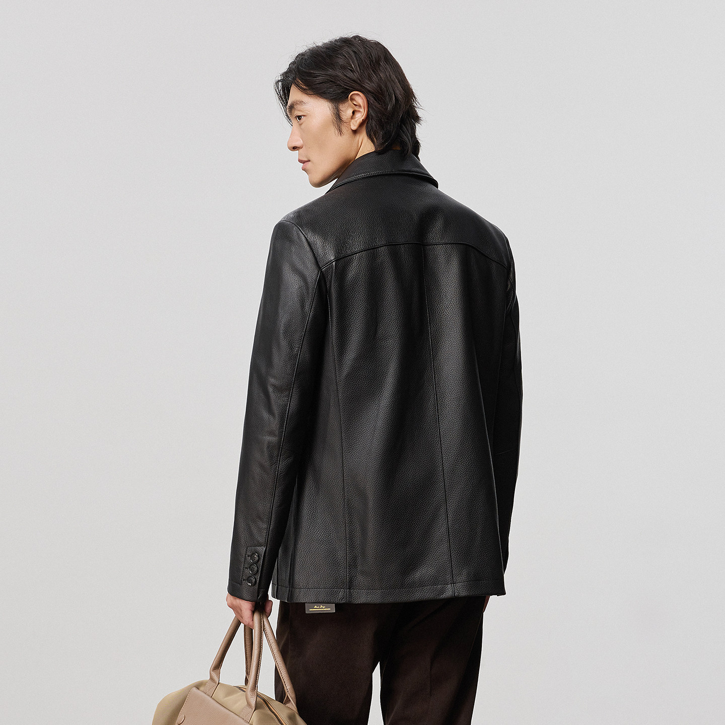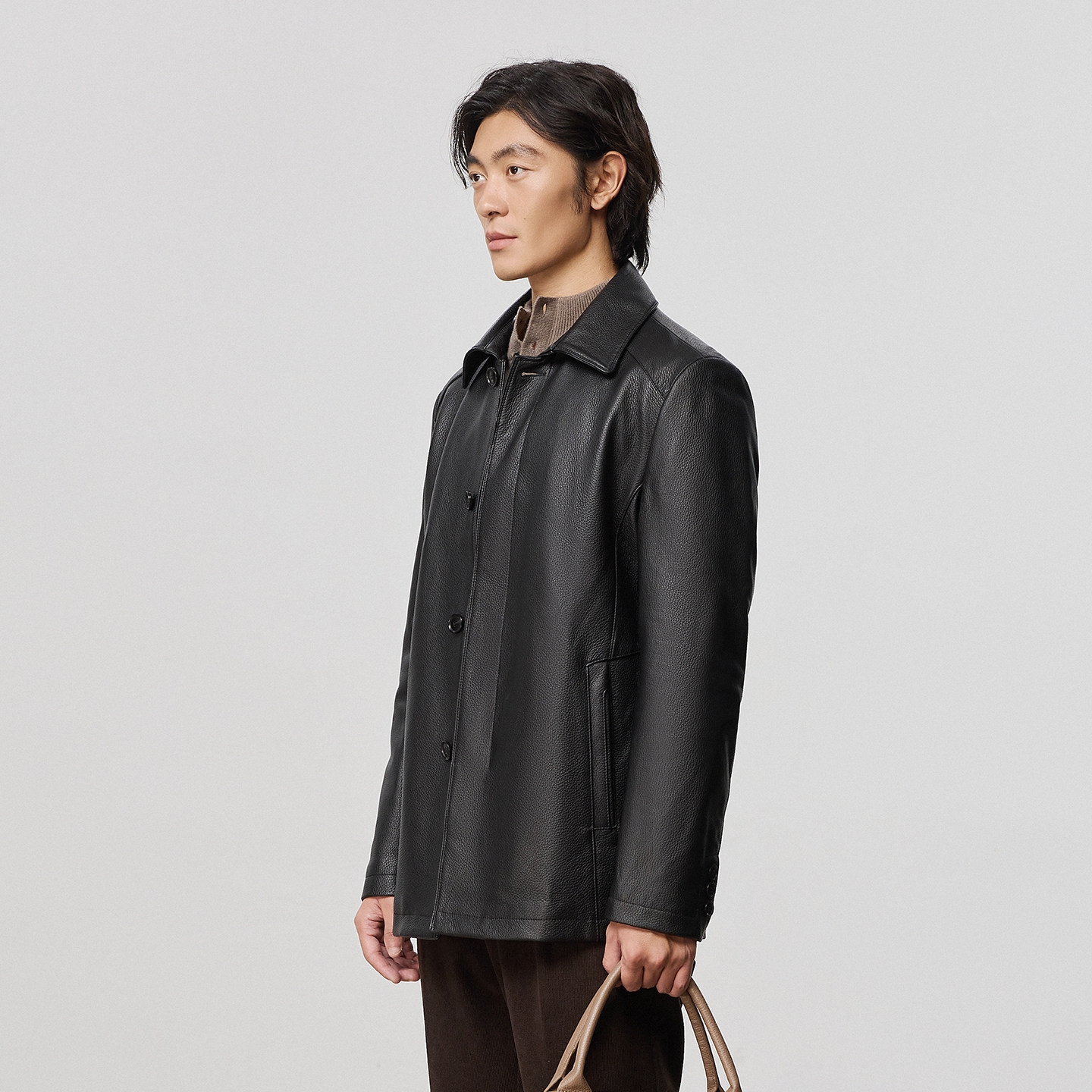 天猫雪豹男款真皮头层鹿皮商务休闲简约大气体制内翻领短皮衣羽绒外套