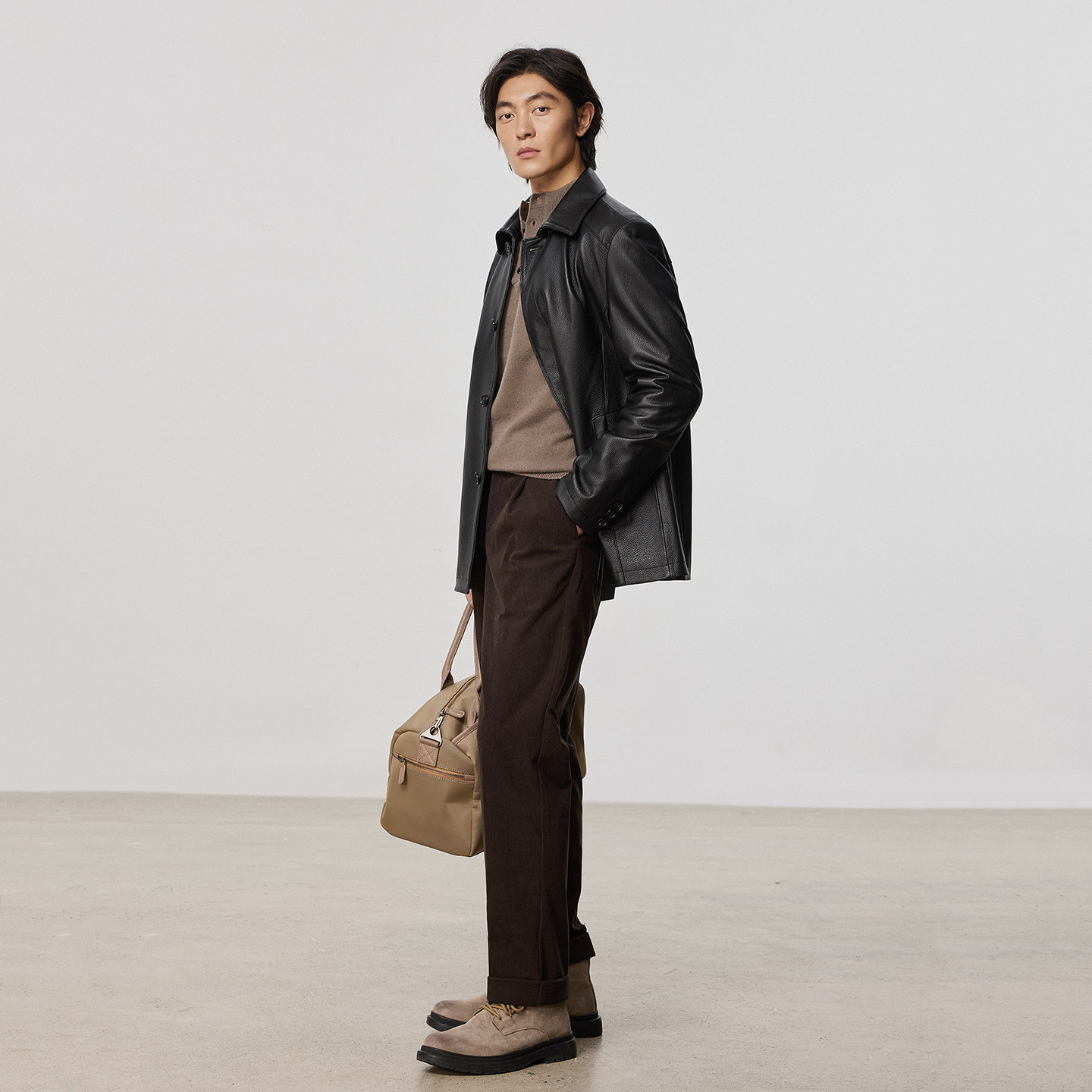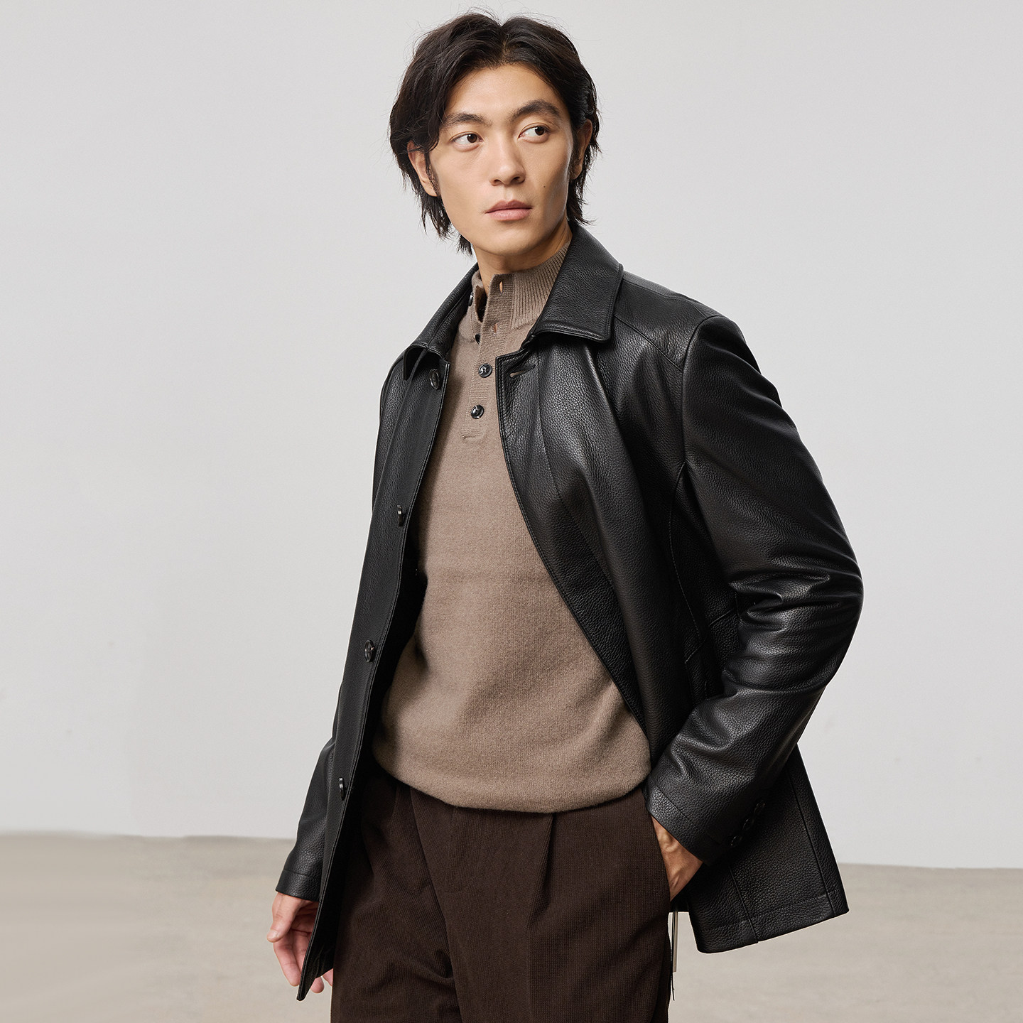 HLA/海澜之家翻领复古PU皮夹克25秋新通勤防风工装机车皮衣外套男