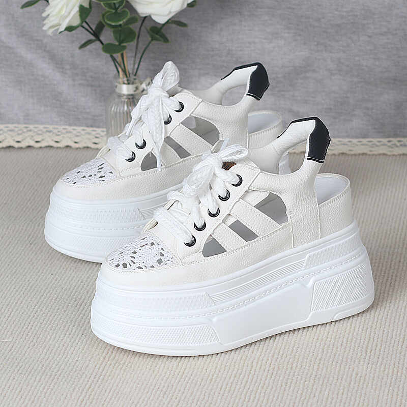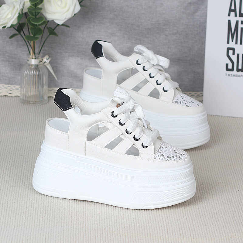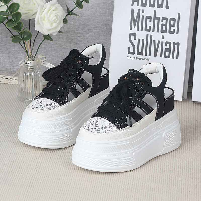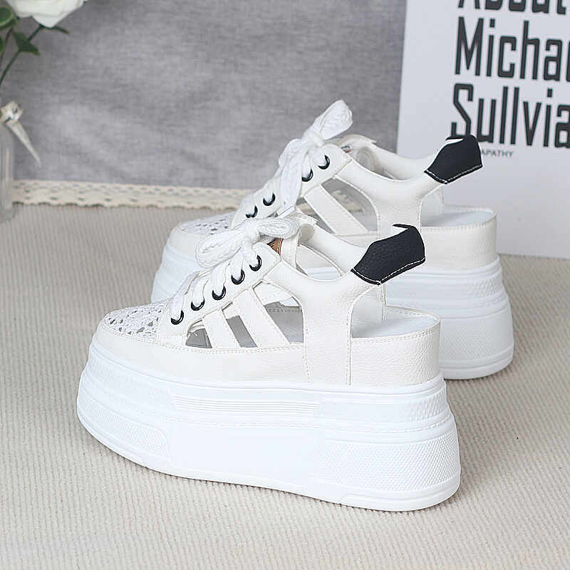 淘宝松糕厚底洞洞凉鞋女夏季小个子超高跟10cm内增高休闲包头罗马凉鞋