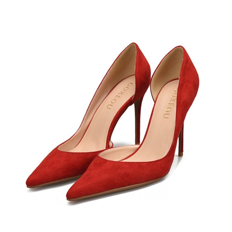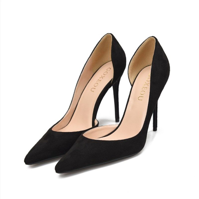 淘宝6/8/10厘米小码女鞋32 33绒面侧空尖头大码高跟鞋40-43-44-45-46
