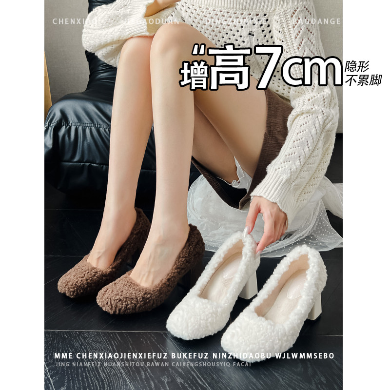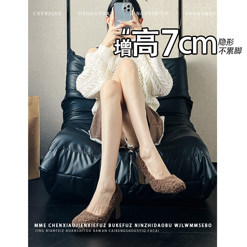 2025冬季新款小个子专属内增高7CM毛毛鞋,集舒适与时尚于一身!采用柔软亲肤的毛绒材质包裹鞋面与内里,保暖透气,久穿不累脚。经典玛丽珍单鞋设计搭配粗跟造型,稳固支撑,行走更安心。隐形内增高7厘米,轻松拉长腿部线条,显高显瘦不突兀。精致金属扣饰点缀,复古又百搭,轻松驾驭通勤、约会或休闲场合。无论是搭配裙装还是裤装,都能展现温柔甜美的冬日气质。专为小个子女生打造,舒适增高一步到位,这个冬天,温暖与美丽兼得!