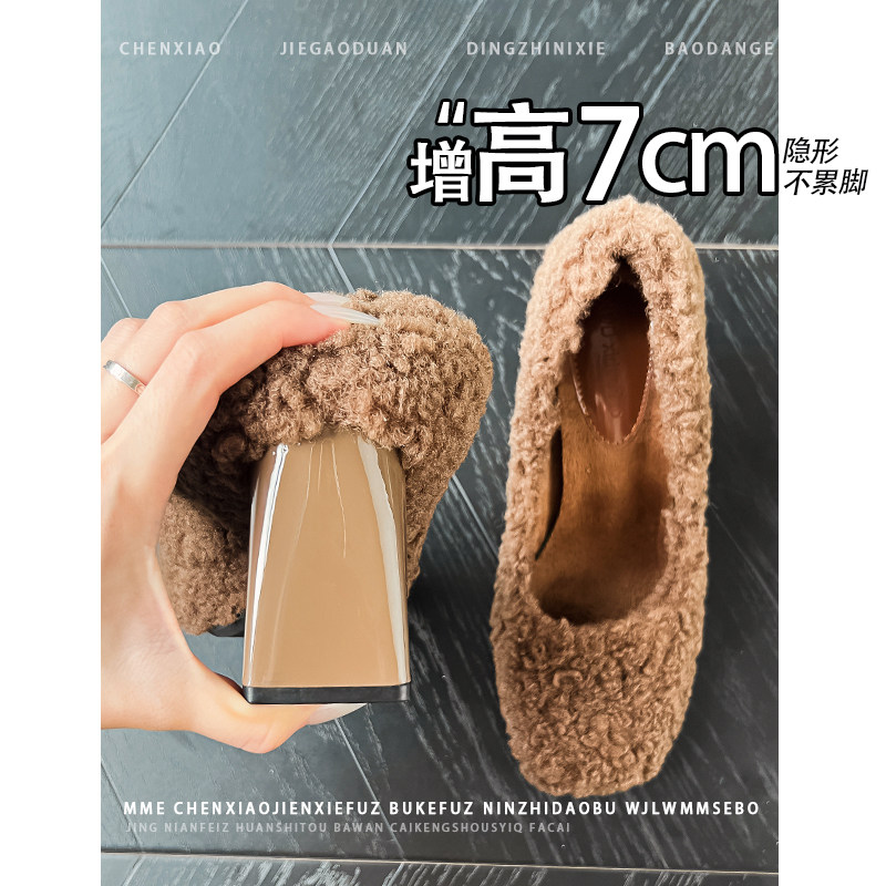 淘宝不累脚!小个子内增高7CM毛毛鞋2025冬季新款粗跟毛绒玛丽珍单鞋