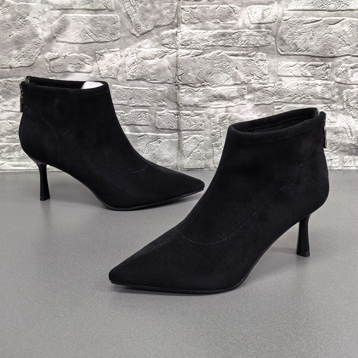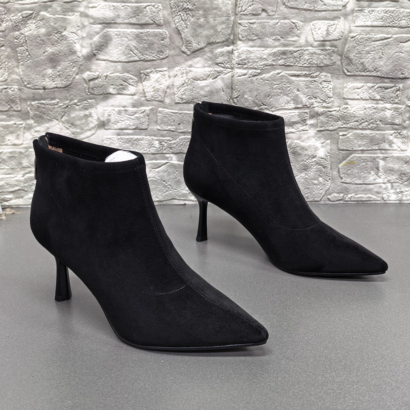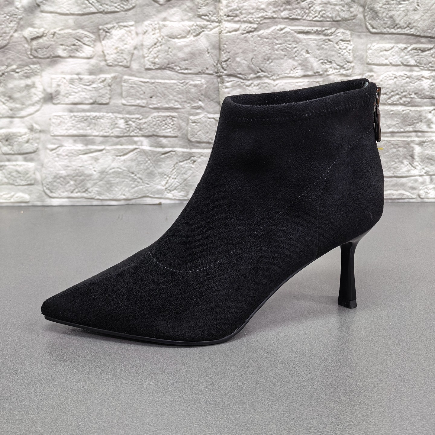 淘宝百田森正品撤柜断码处理尖头细跟弹力短靴女冬季高跟显瘦瘦瘦靴女