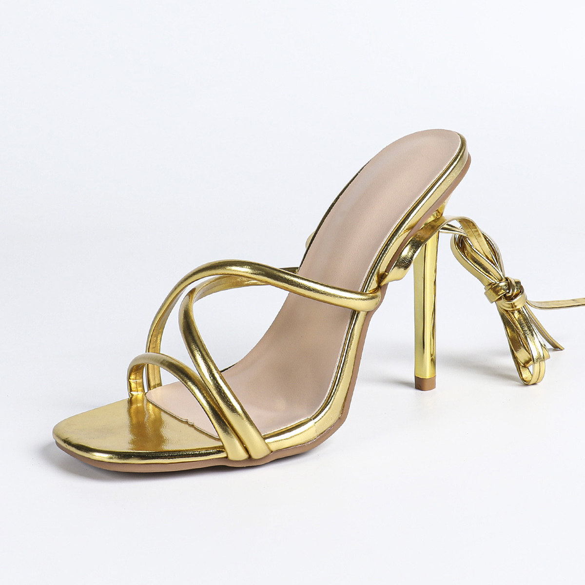 淘宝方头露趾罗马凉鞋女2026春夏时尚金色细跟交叉绑带性感走秀高跟鞋