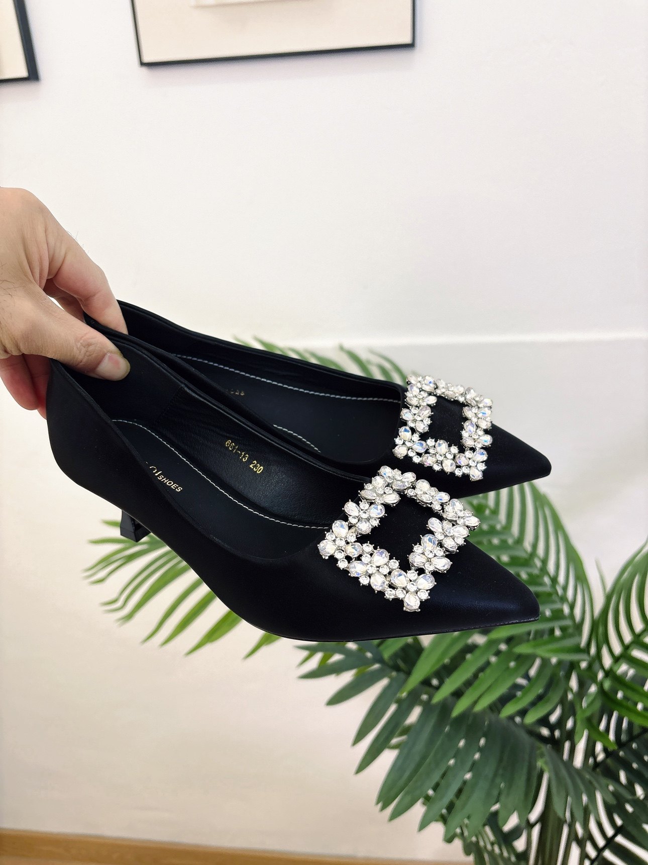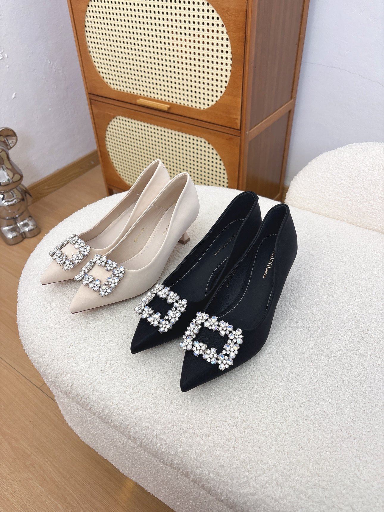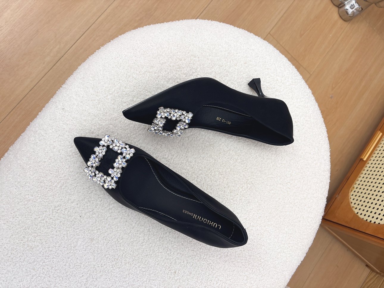 淘宝通勤低跟不累脚方扣水钻浅口高跟鞋单鞋女2026年新款法式尖头细跟