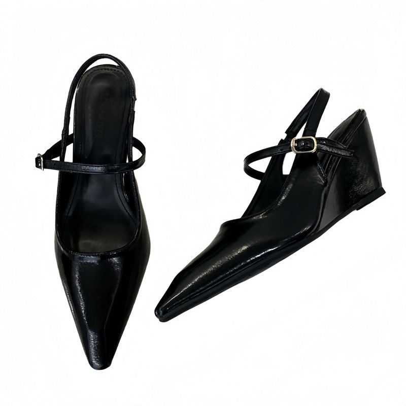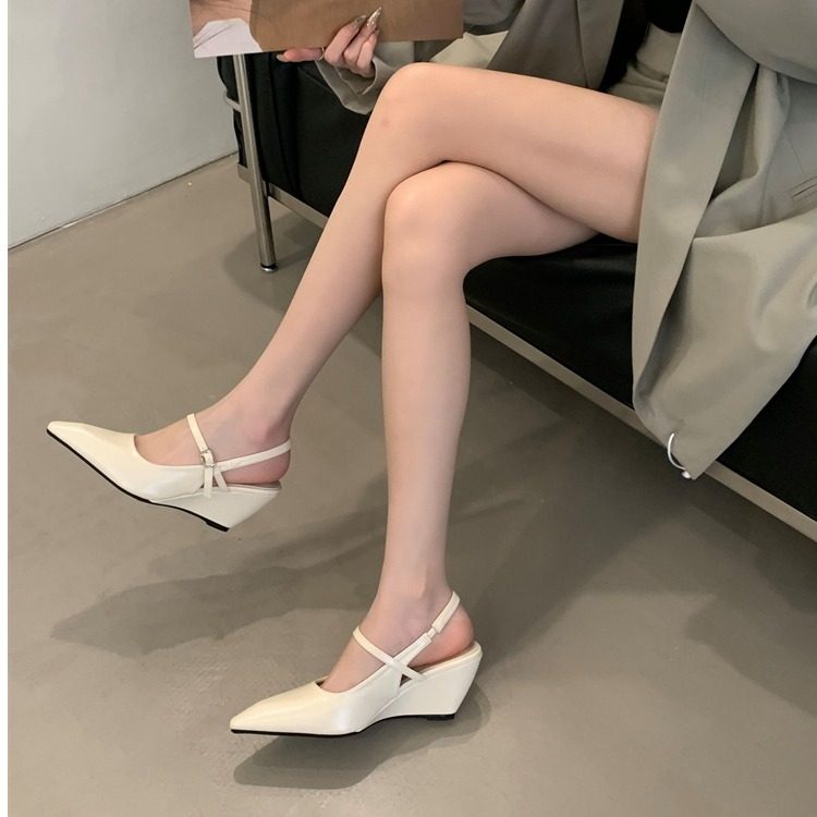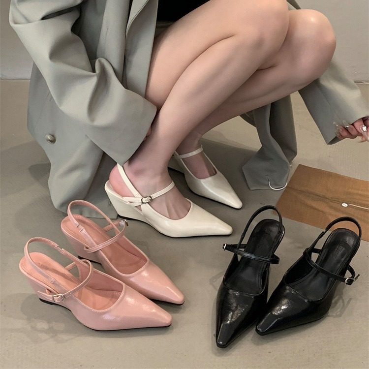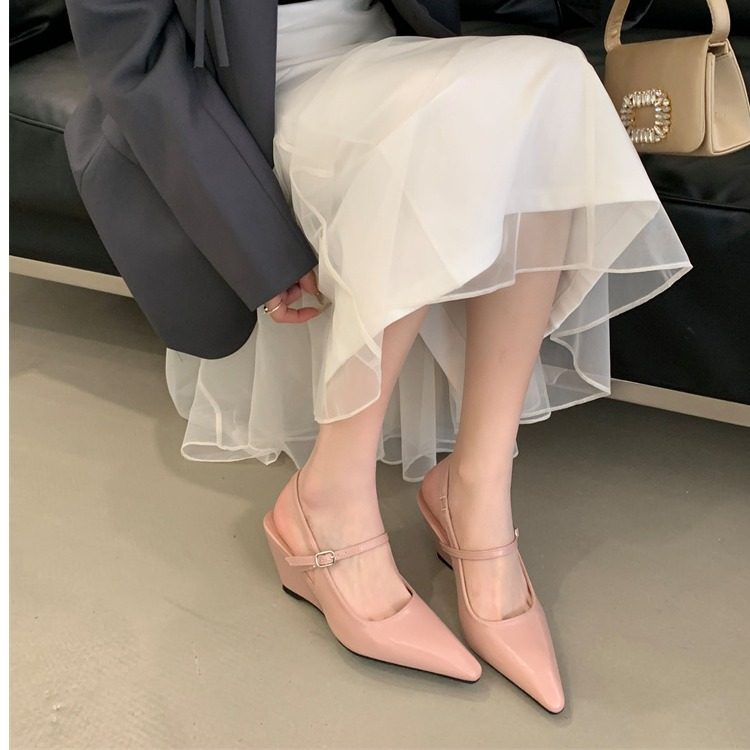 2026早春新款尖头坡跟高跟鞋,融合优雅与舒适,演绎“晚晚风”极简美学。采用一字带包头设计,简约中凸显脚踝线条,浅口单鞋造型轻盈透气,后空凉鞋款式兼顾时尚与清凉。坡跟设计提升身姿比例,行走稳健不累脚,尖头拉长腿部视觉,尽显知性气质。精选柔软亲肤材质,贴合脚型,适合通勤、约会或休闲出行。无论是搭配裙装还是裤装,都能轻松打造温柔慵懒又不失精致的早春造型,是都市女性衣橱中不可或缺的时尚单品。