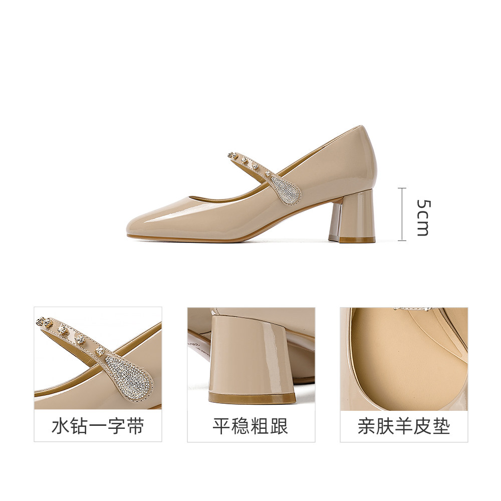 天猫诺贝达新款女单鞋法式粗高跟玛丽珍鞋浅口职场同款小皮鞋RS257612