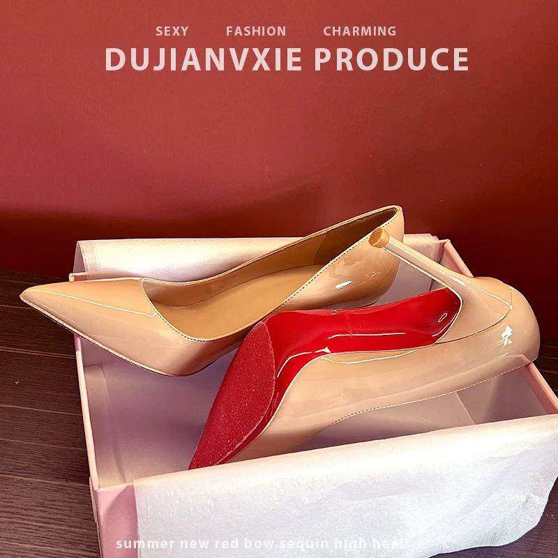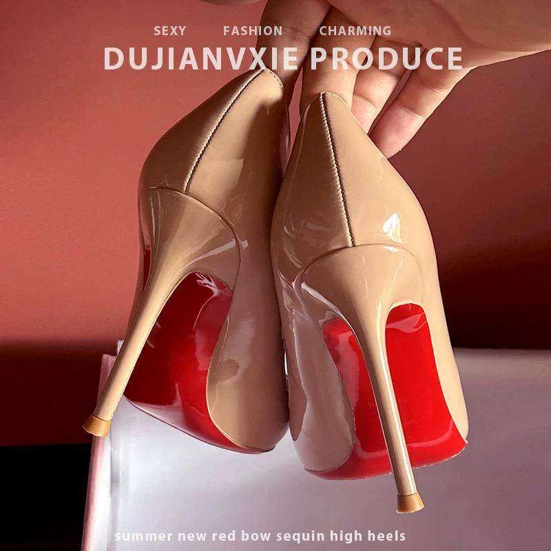 淘宝品牌红底女漆皮高跟鞋2025新款通勤尖头浅口优雅性感细跟鞋10厘米