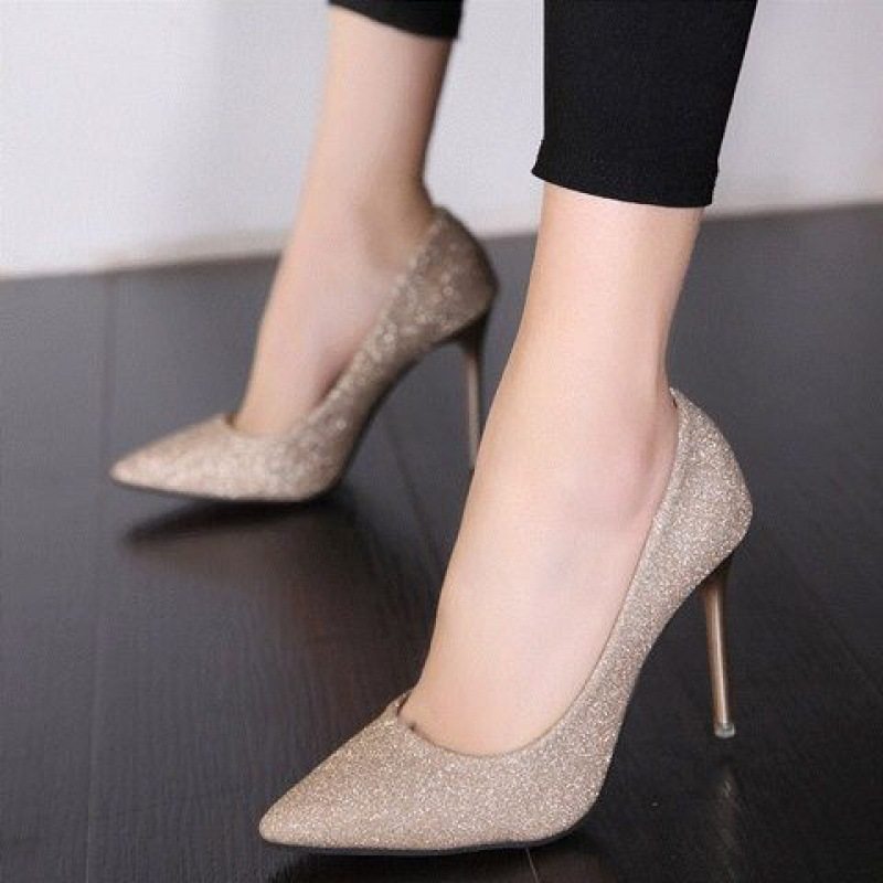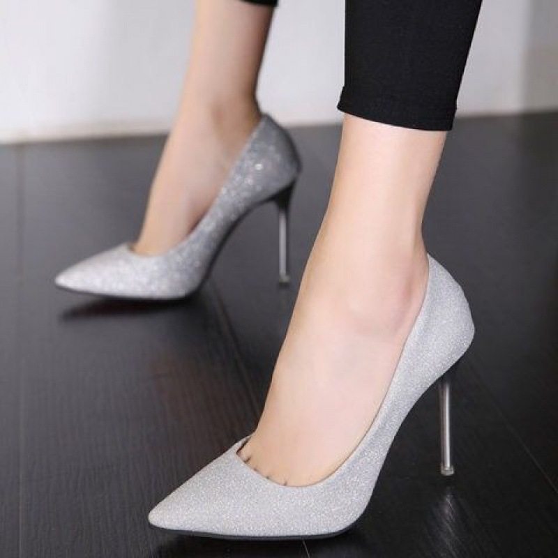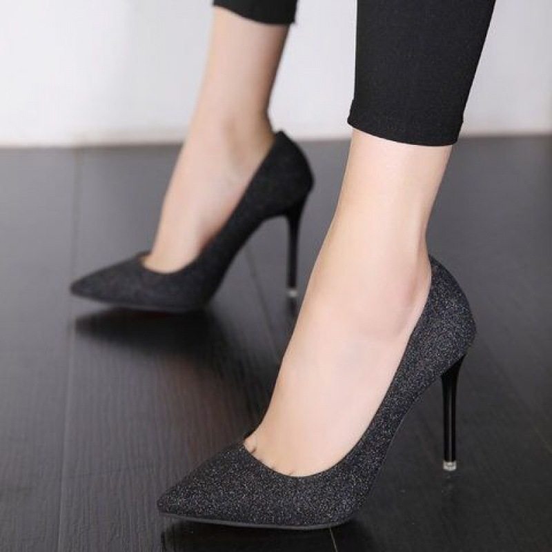 淘宝Miss Smile2024春季新款银色高跟鞋女细跟黑色性感百搭法式网红亮