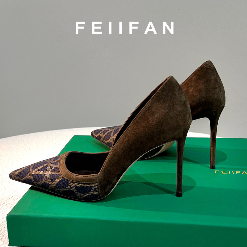 淘宝高跟鞋女2025秋冬新款细跟气质高级不累脚拼色法式绝美尖头单鞋子