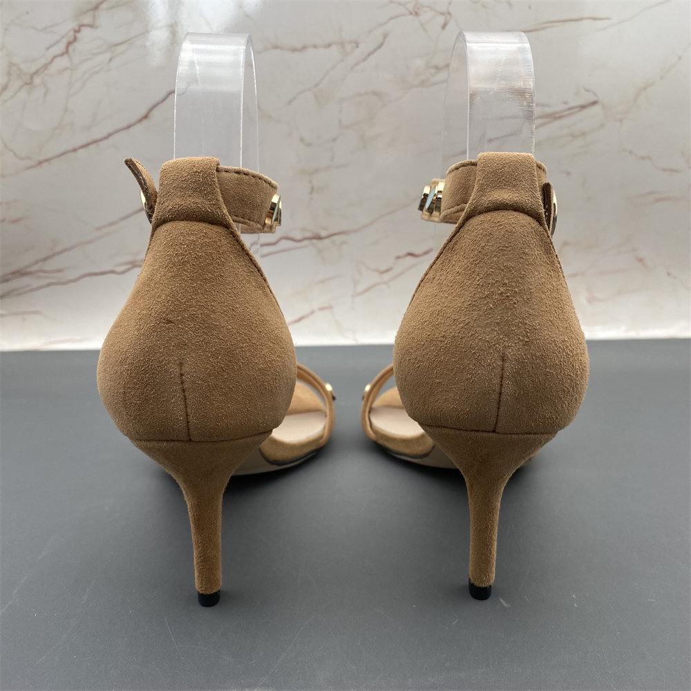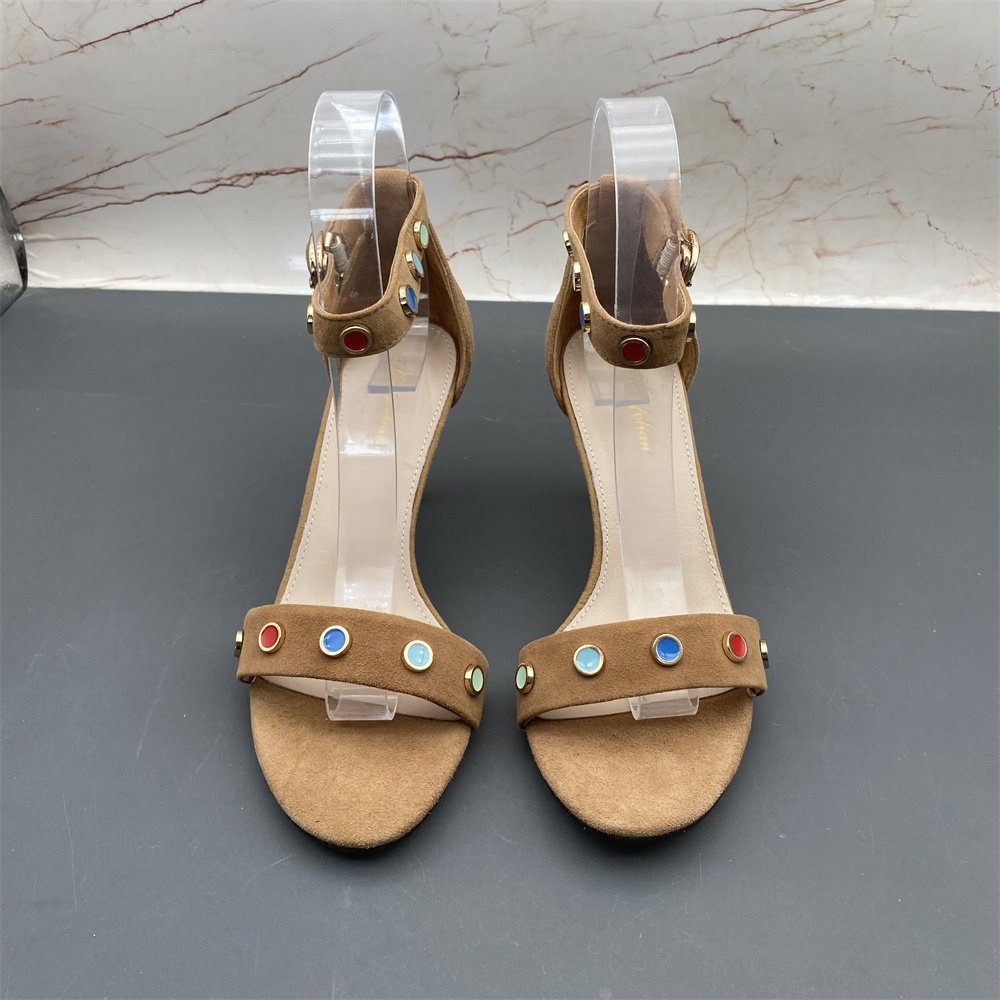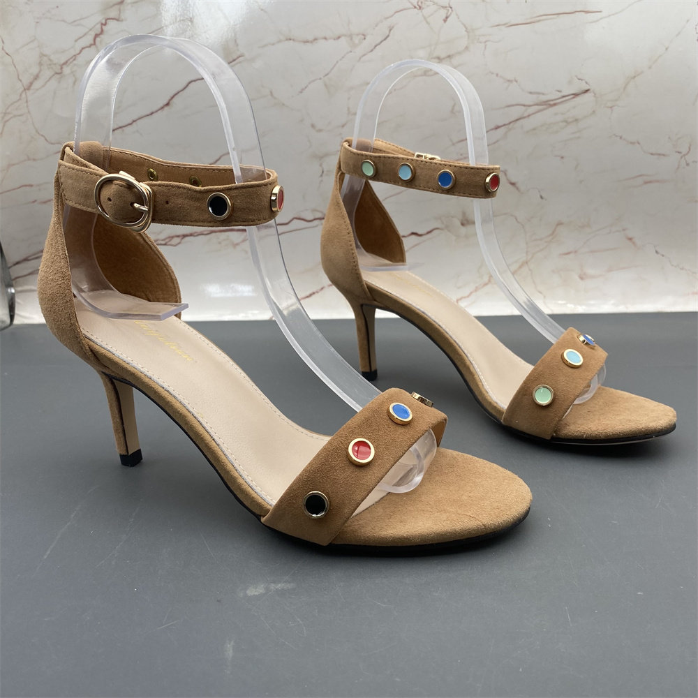 淘宝羊皮真皮断码撤柜处理女鞋新款高跟细跟铆钉露趾中空扣带时尚凉鞋