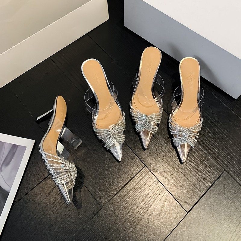 淘宝Miss Smile尖头透明水钻高跟鞋一字凉拖2025夏季外穿性感拖鞋凉鞋
