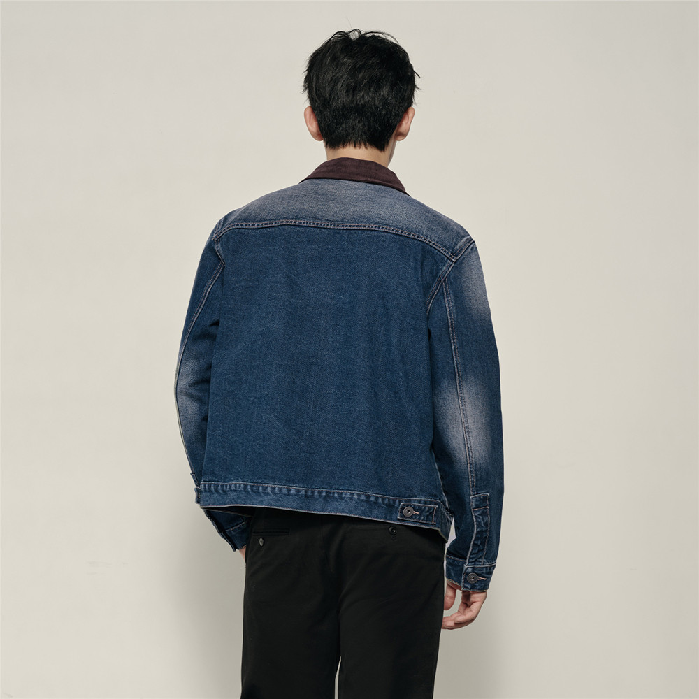 天猫【韩国同款】佐丹奴男装复古纯棉拼接灯芯绒翻领牛仔外套01075884