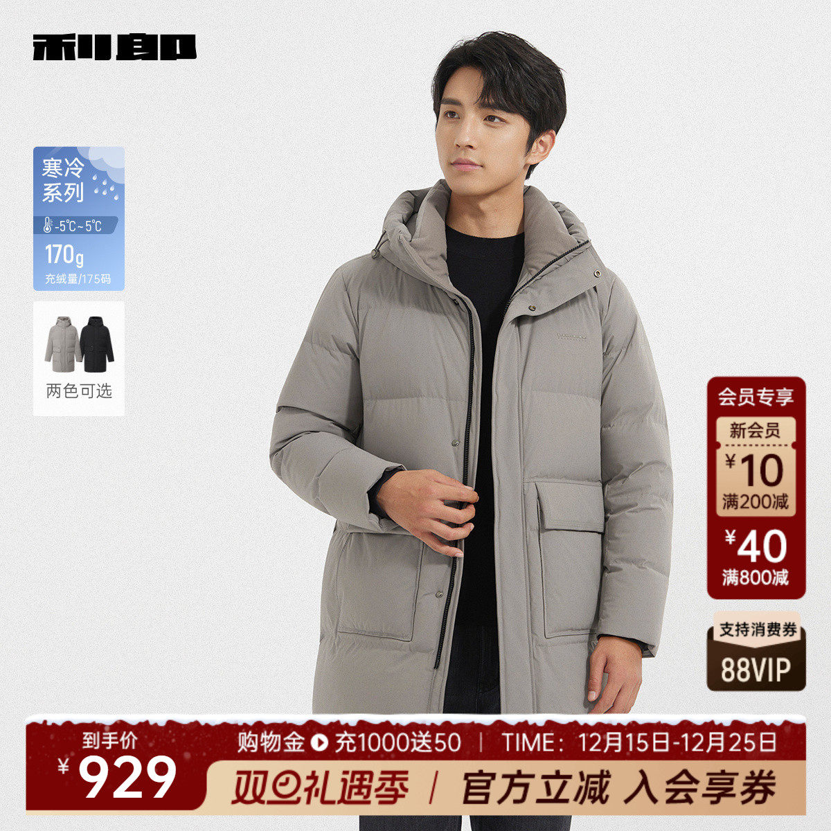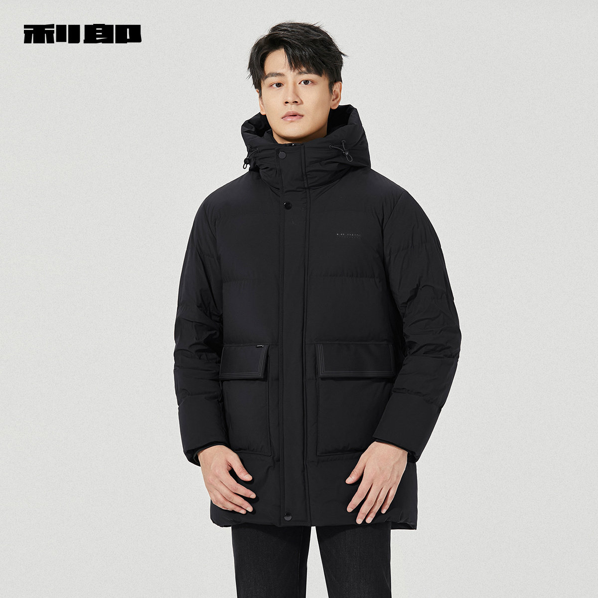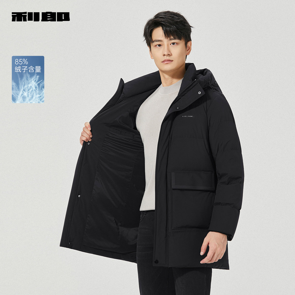 天猫利郎官方 羽绒服男士连帽中长款2025冬季新款保暖商务休闲外套男