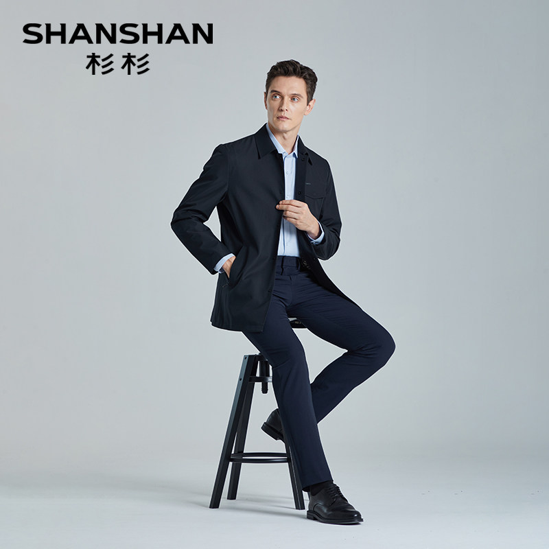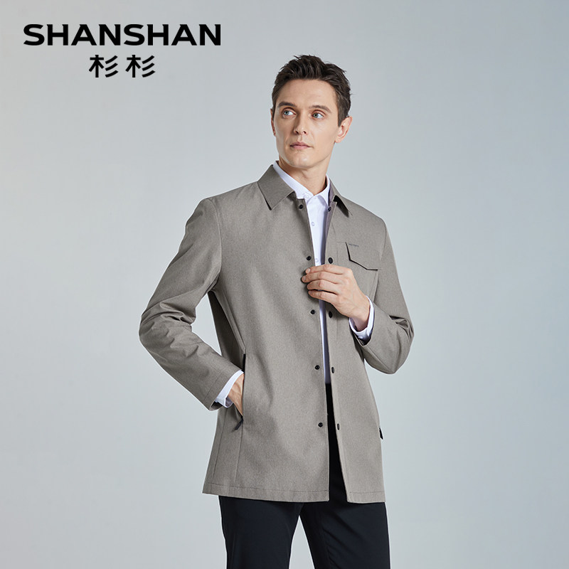 天猫SHANSHAN杉杉品牌男士商务翻领风衣男款2025新款秋季中长款外套男