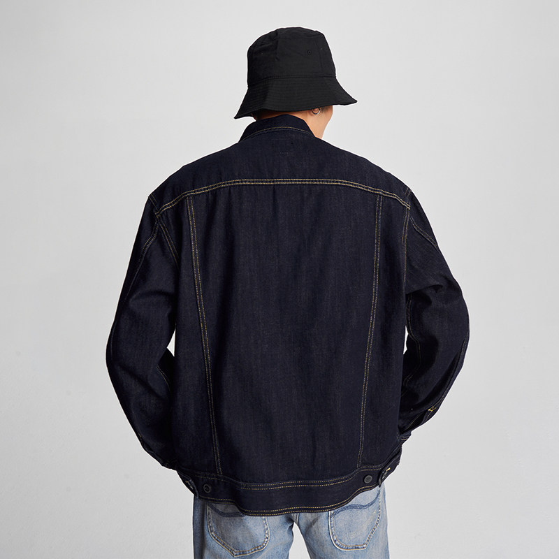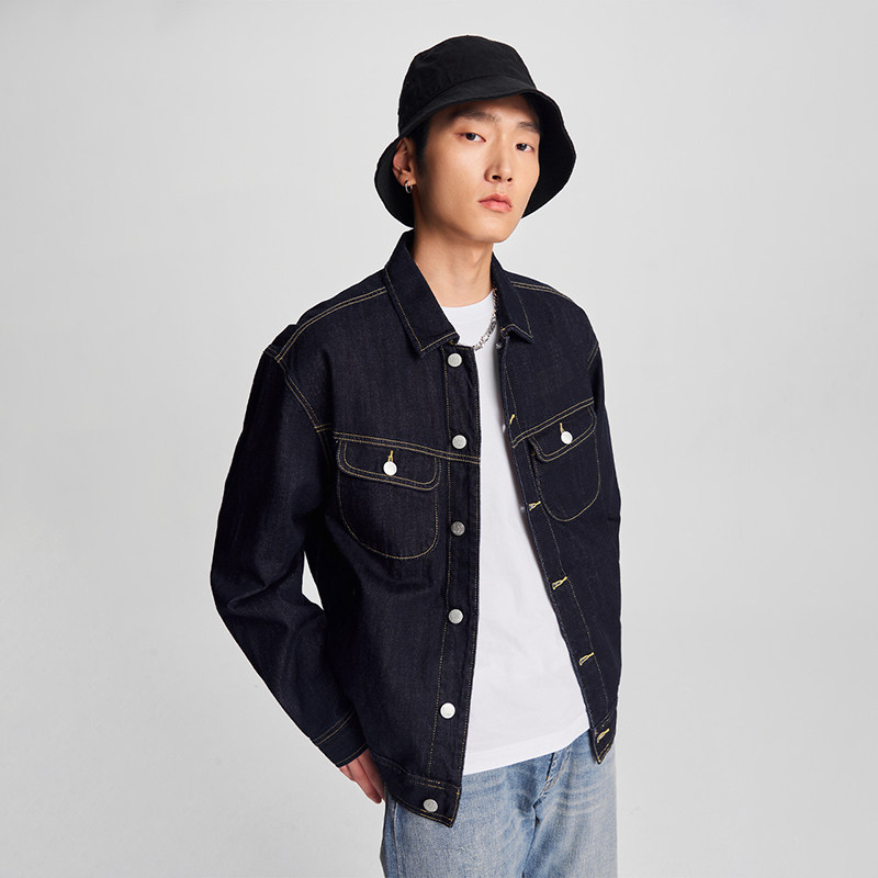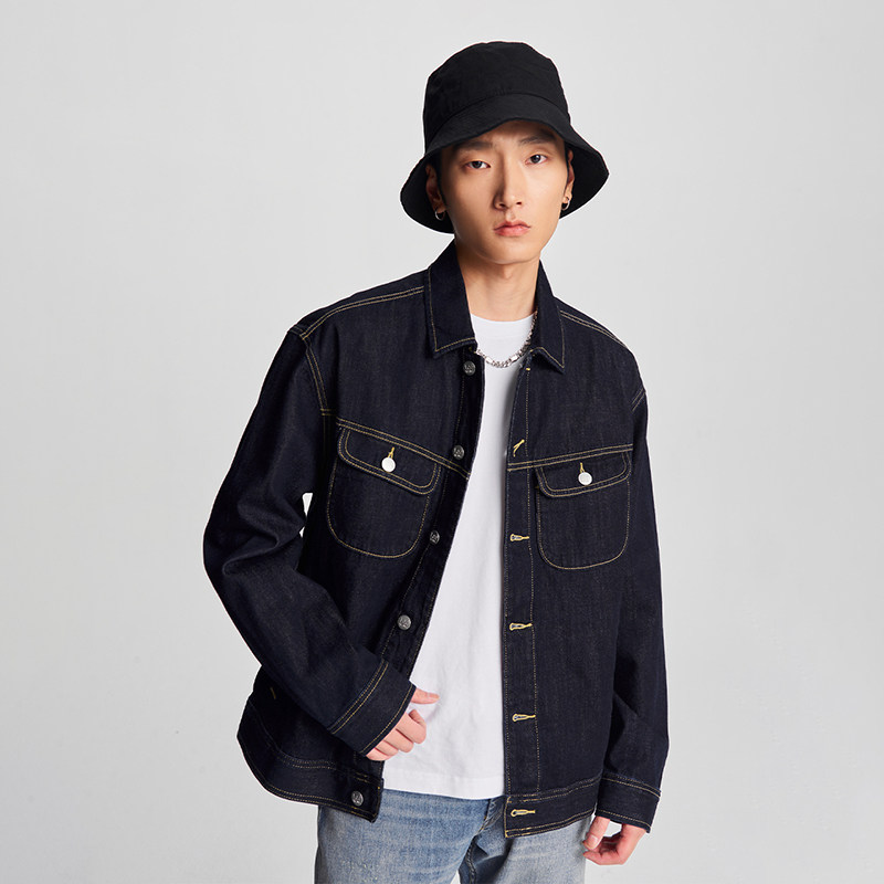 淘美式复古设计感原色牛仔外套宽松百搭正肩口袋cleanfit夹克上衣男