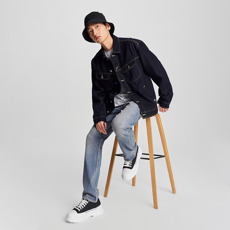 天班尼路SK青年休闲牛仔夹克男秋季新款宽松百搭上衣水洗外套男款MS