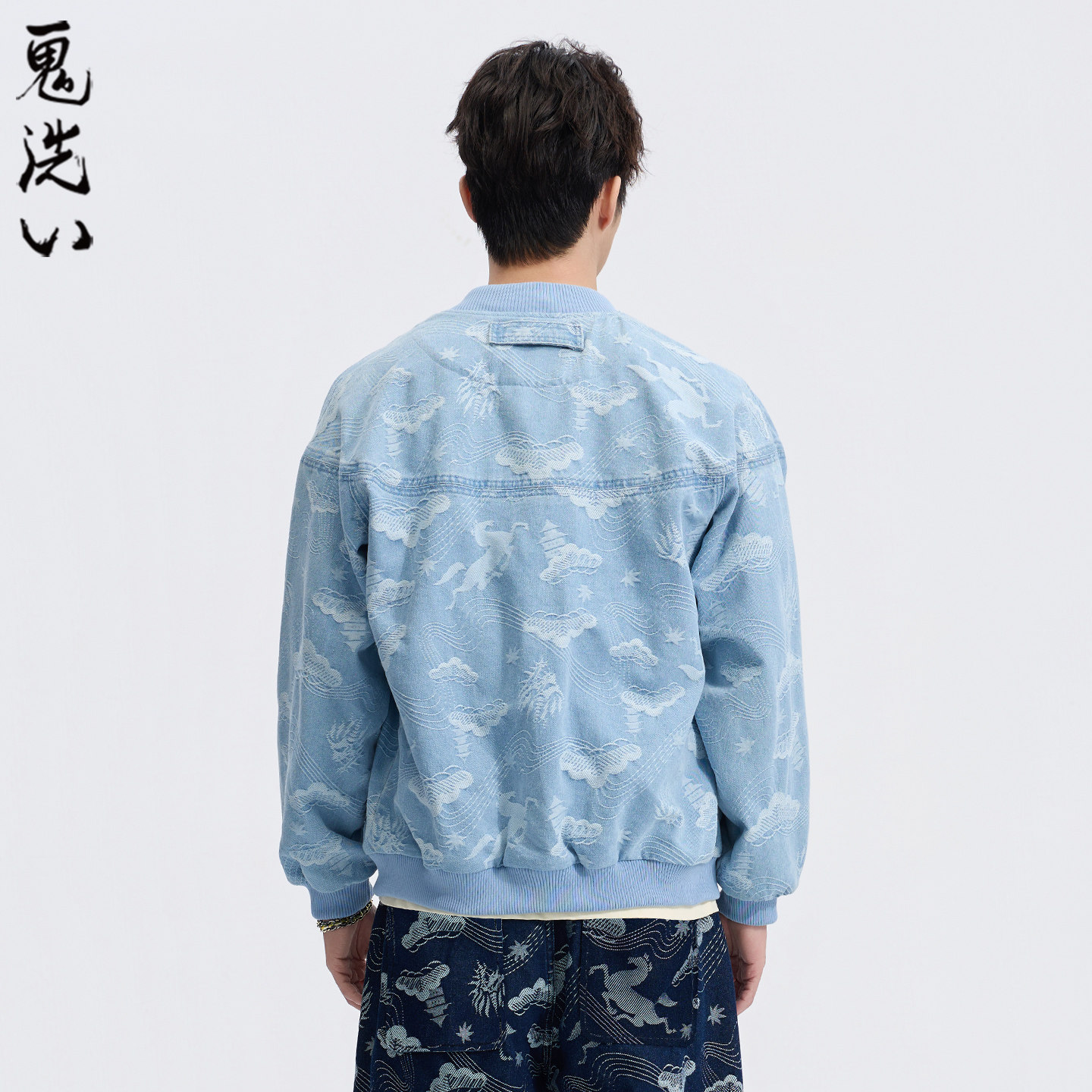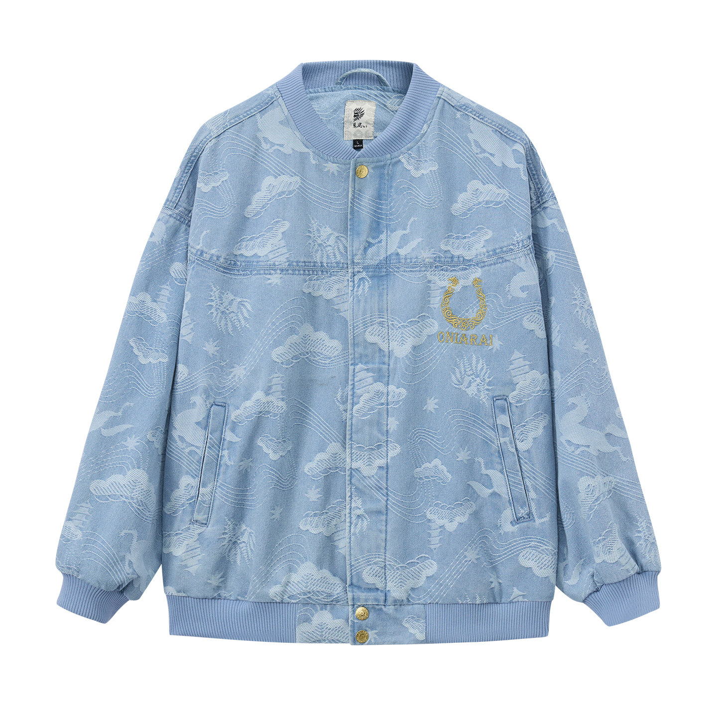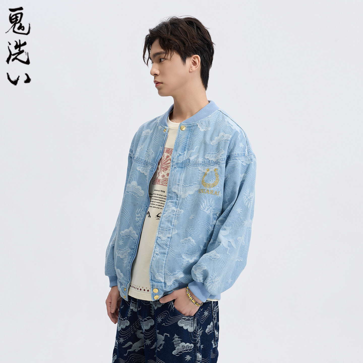 天猫ONIARAI/鬼洗26春季马纹松叶提织金马蹄棒球领牛仔外套男 B340250