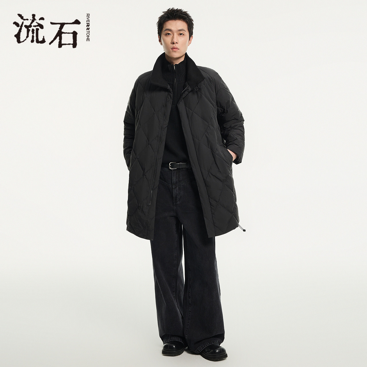 天猫流石男装高级设计感中长款羽绒服2025年冬季新款男士加厚冬天外套