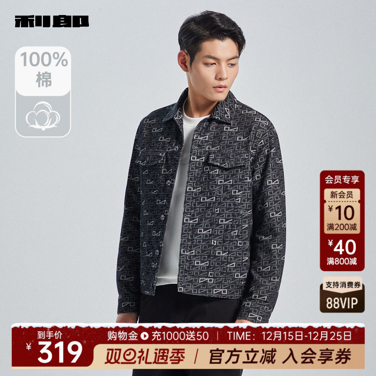天猫【牛仔外套】利郎奥莱 茄克男秋季商务休闲字母提花纯棉男士夹克