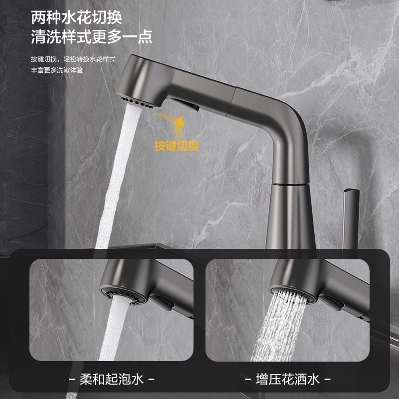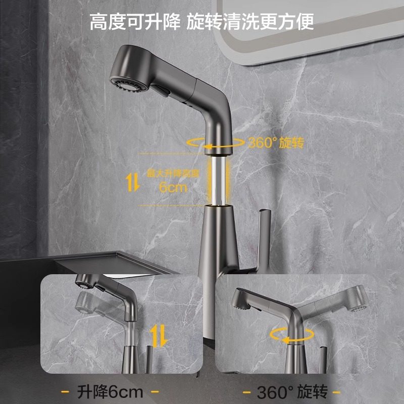 四季沐歌升降抽拉面盆水龙头,专为现代卫生间设计,集实用与美观于一体。采用优质精铜主体,表面经多层电镀处理,防腐防锈,持久耐用。支持360°自由抽拉,升降调节高度,满足不同使用场景需求,无论是洗脸、洗手还是冲洗面盆都轻松便捷。冷热水双控设计,精准调温,使用更安全舒适。内置陶瓷阀芯,密封性好,开关顺滑,有效防止滴漏。适用于各种台盆安装,适配性强。简约时尚的外观搭配流畅线条,提升卫浴空间格调。四季沐歌以匠心工艺打造高品质卫浴产品,让日常洗漱更省心、更愉悦。