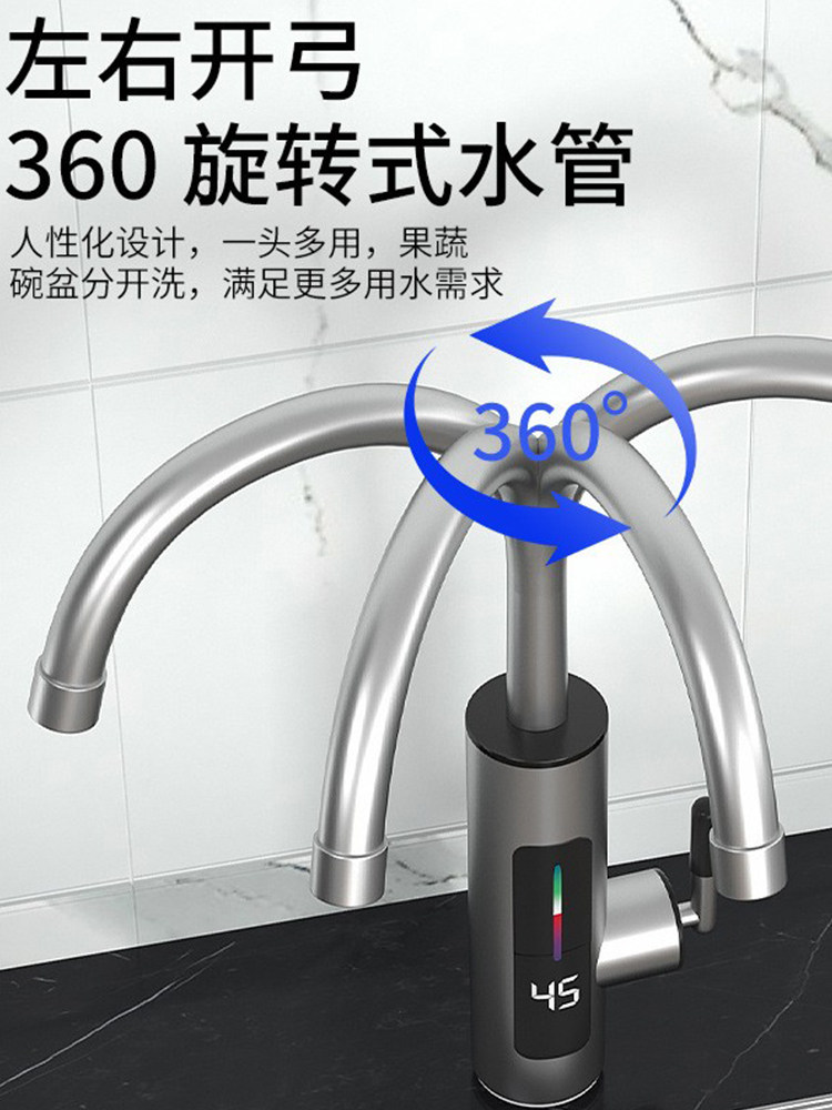 爱荷美家用厨房不锈钢电热水龙头采用优质304不锈钢材质,坚固耐用,防腐防锈,安全健康。即热式设计,三秒速出热水,冷热两用,四季皆宜,满足厨房洗菜、洗碗、烹饪等多种需求。内置高效加热系统,智能温控,节能省电,避免反复加热造成能源浪费。安装简便,适配多数标准水槽,无需改造水路。配备防干烧、防漏电等多重安全保护,使用更安心。小巧机身节省空间,操作便捷,是提升现代厨房生活品质的实用之选。无论是冬季暖手洗碗,还是夏季清爽冲洗,爱荷美电热水龙头都能带来舒适便捷的用水体验。