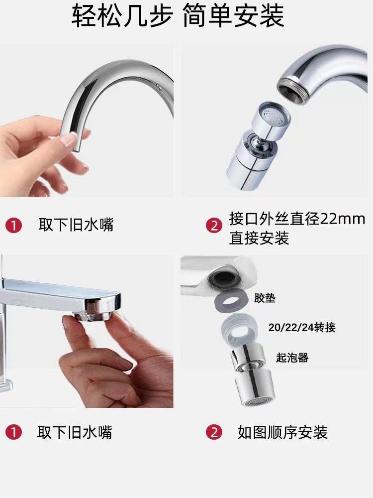 天机械臂万向水龙头可旋转延伸接头防溅神器摇臂防溅水过滤器厨房