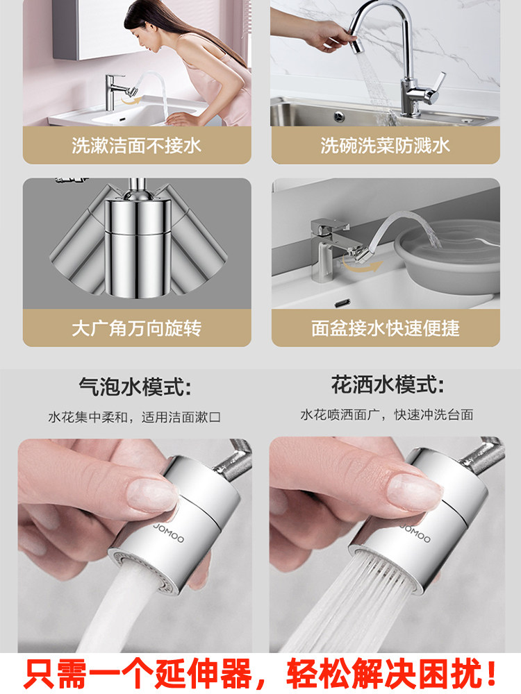 天猫九牧水龙头防溅头延伸器通用万向起泡器延伸水龙头嘴防溅洗漱神器