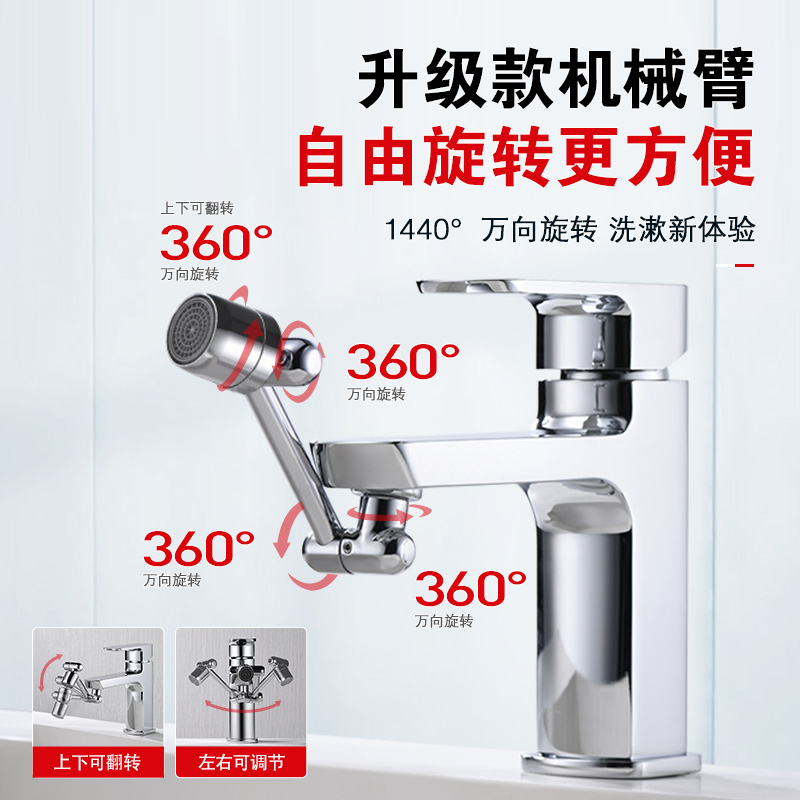天机械臂万向水龙头可旋转延伸接头防溅神器摇臂防溅水过滤器厨房
