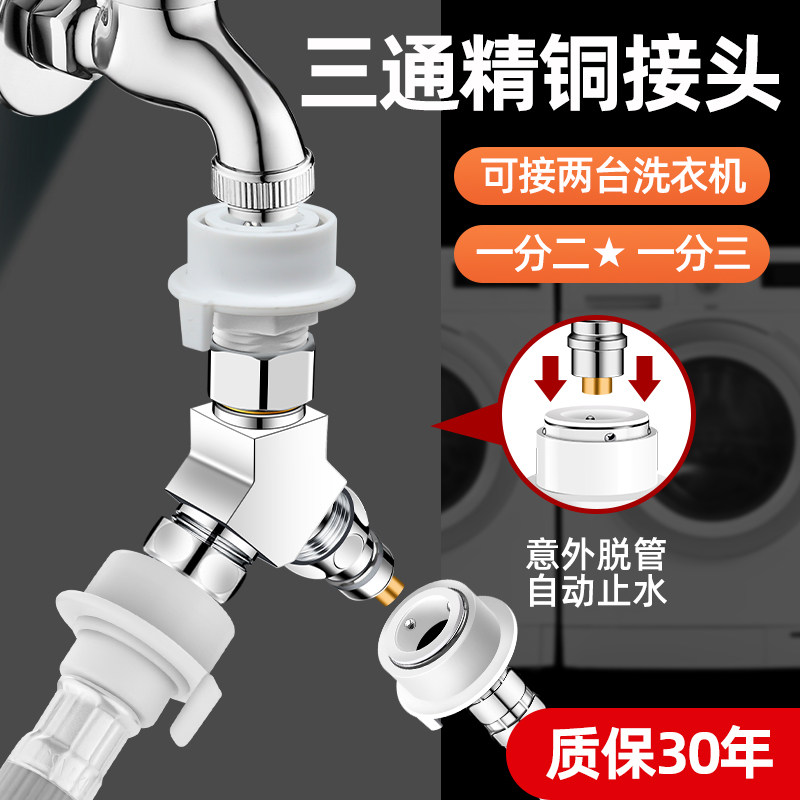 天猫洗衣机水龙头一分二接头一进二出进水管转三通进水口分流器分水阀