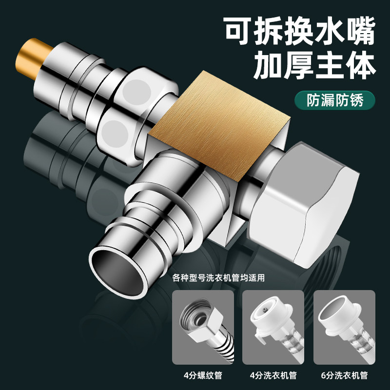 洗衣机水龙头一分二接头(一进二出进水管转三通进水口分流器分水阀)是一种实用的水路配件,主要用于将单个水龙头出水口扩展为两个独立供水口。它采用一进二出设计,通过三通结构实现水流分流,可同时为洗衣机和其他用水设备(如拖把池、马桶等)供水,提升用水效率。产品通常由优质铜或不锈钢材质制成,耐腐蚀、抗压性强,密封性能良好,有效防止漏水。安装简便,无需专业工具,适配标准4分或6分接口,广泛用于家庭、公寓等场所。配备独立开关阀,可灵活控制各出水口水流,节能环保,是解决多设备共用一个水源的理想解决方案。