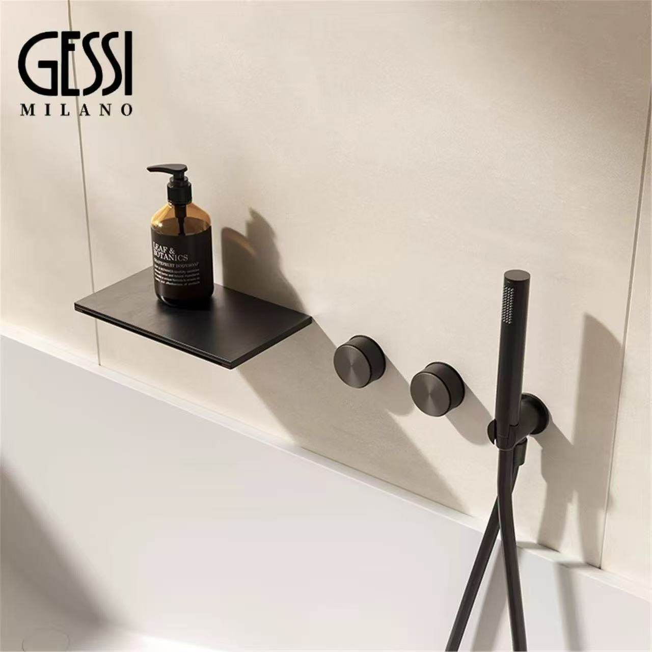 淘宝意大利捷仕GESSI浴缸龙头入墙式冷热缸边暗装瀑布水龙头拉丝银