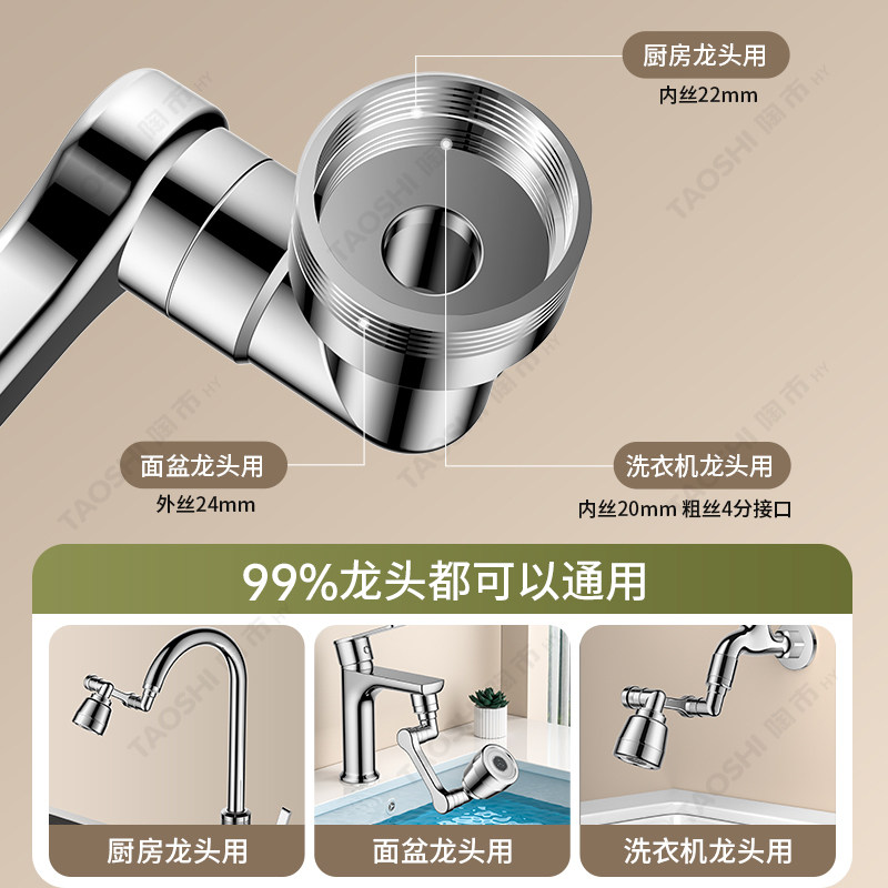 天机械臂万向水龙头可旋转延伸接头防溅神器摇臂防溅水过滤器厨房