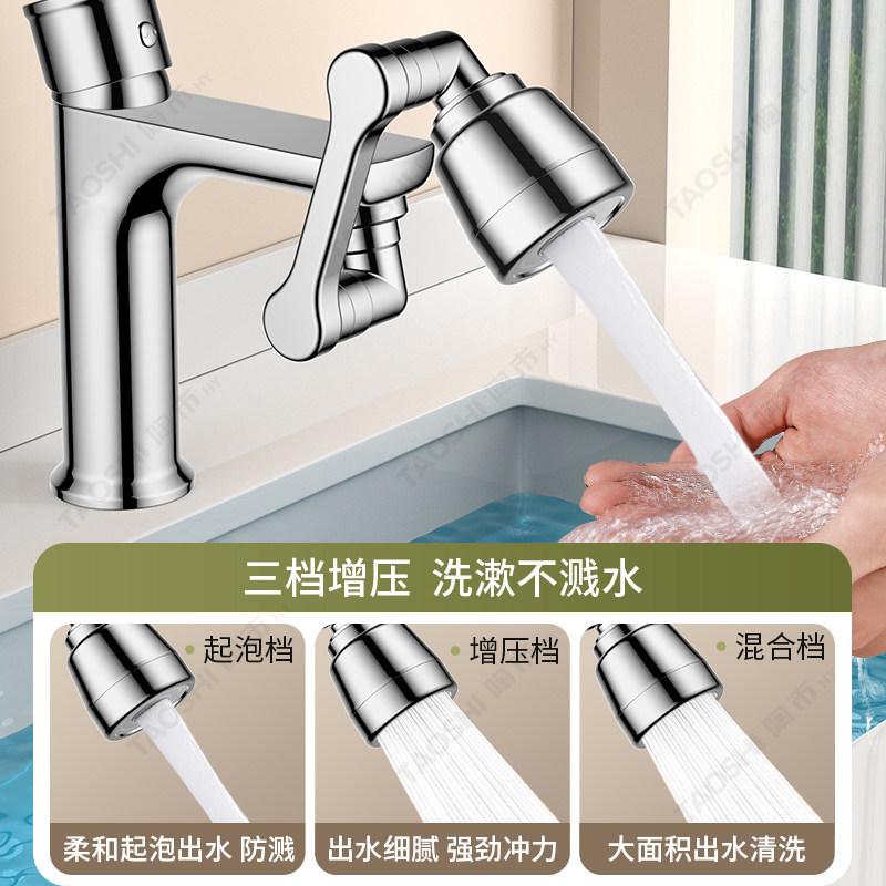 天猫全铜多功能机械臂万向水龙头延伸洗脸盆起泡器接头防溅神器摇臂