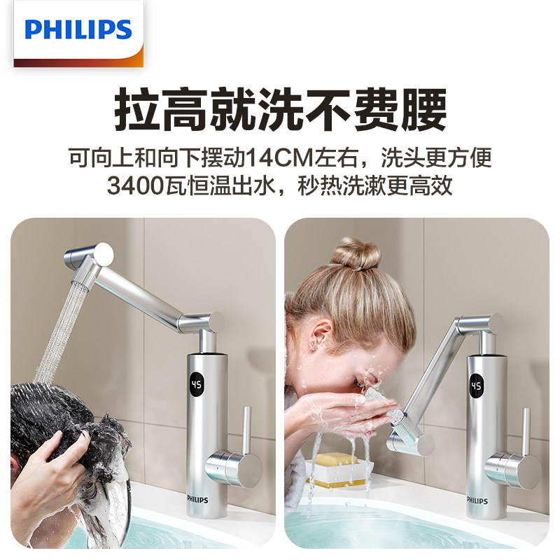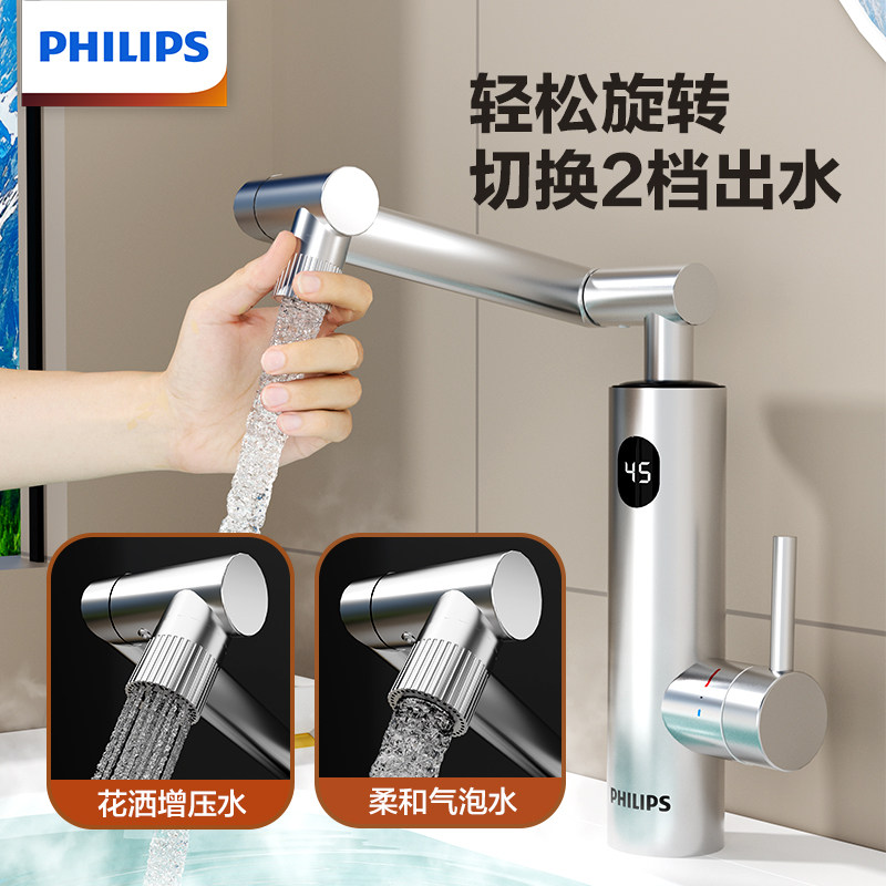 天猫飞利浦电热水龙头冷热两用卫生间厨房家用机械臂即热式热水器加热