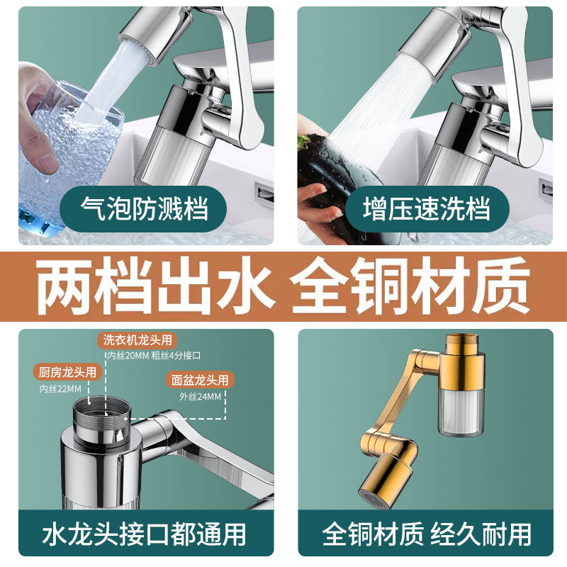 天机械臂万向水龙头可旋转延伸接头防溅神器摇臂防溅水过滤器厨房