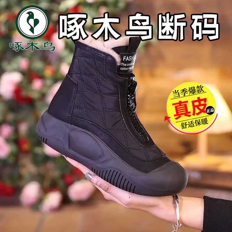 淘品牌清仓真皮雪地靴女2025冬季新款加绒棉鞋厚底中筒靴平底马丁靴