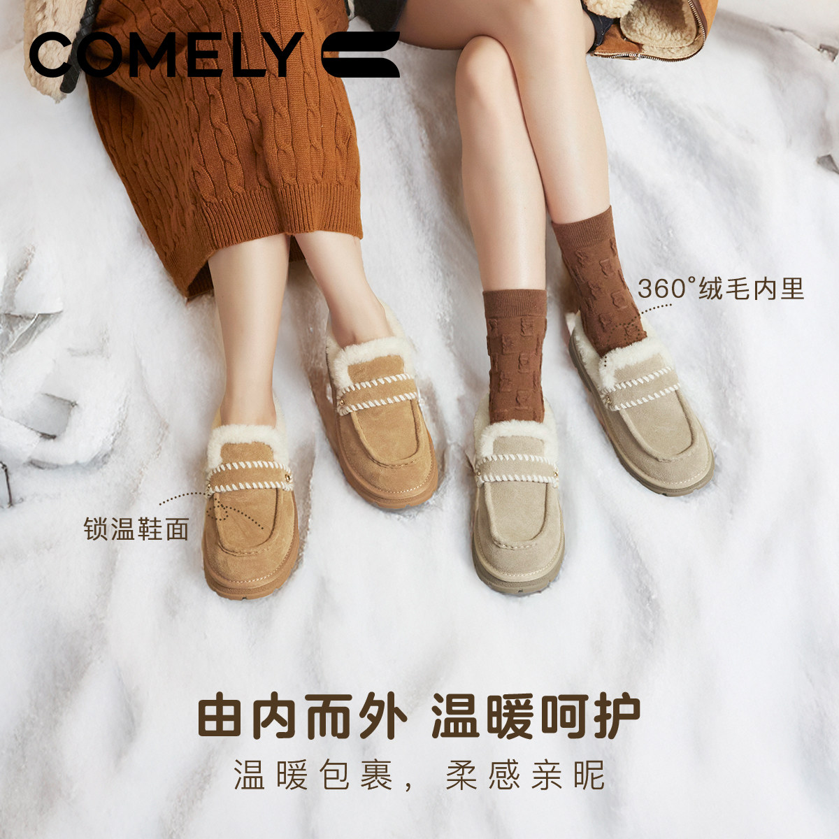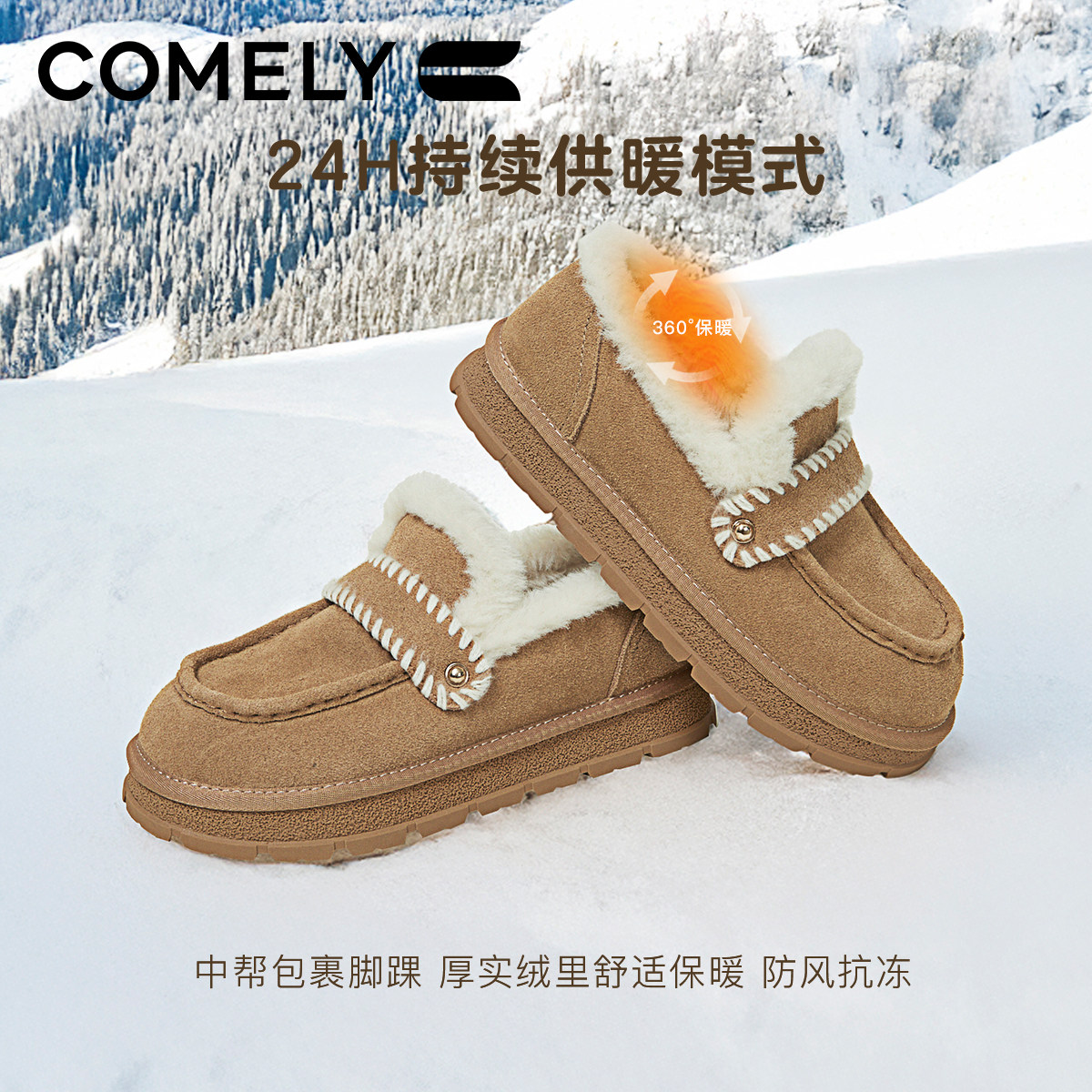 骆驼女鞋2025冬季时尚厚底雪地靴保暖厚绒棉鞋靴子