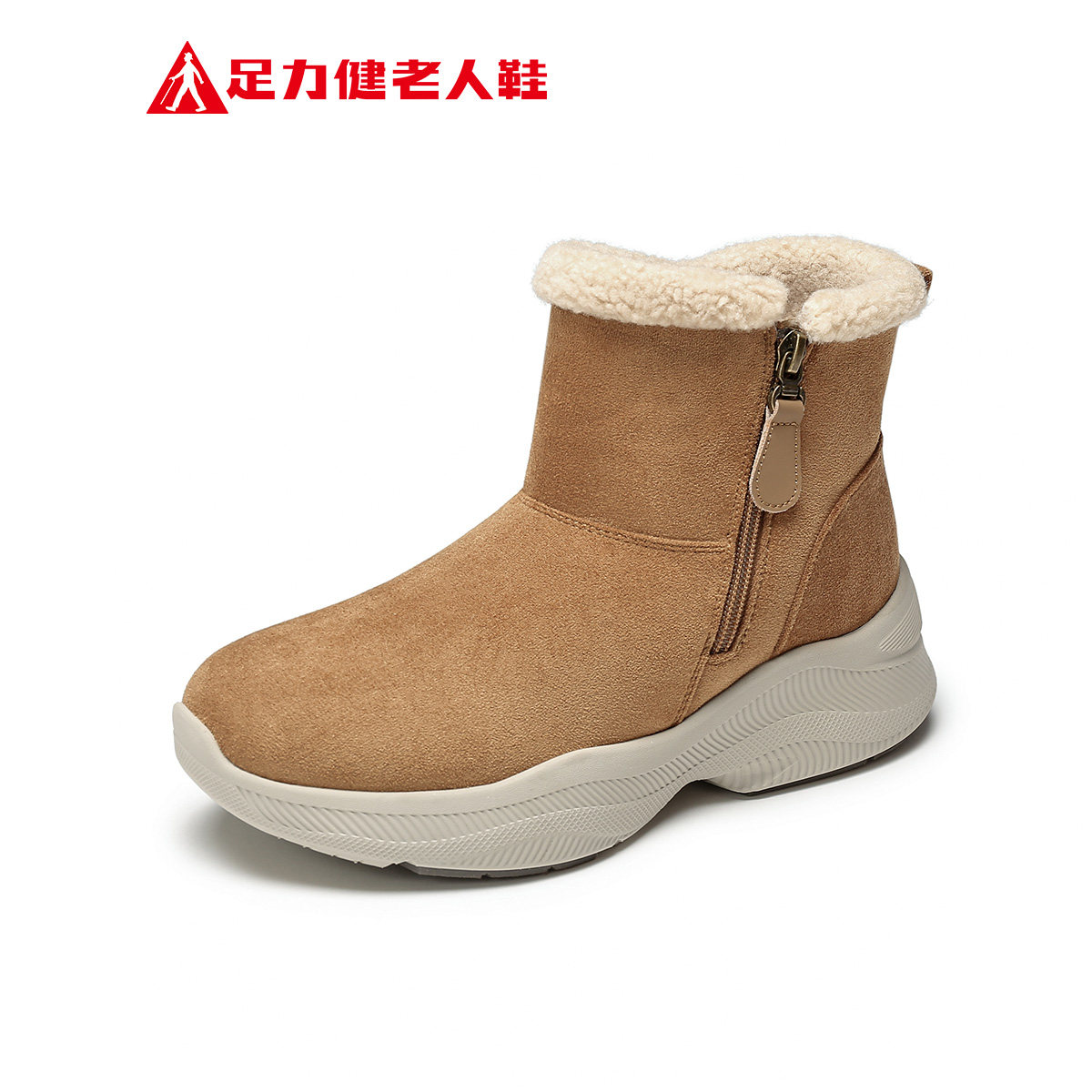 天猫足力健女鞋正品加绒雪地靴短筒冬季加厚保暖棉鞋不累脚高帮妈妈鞋